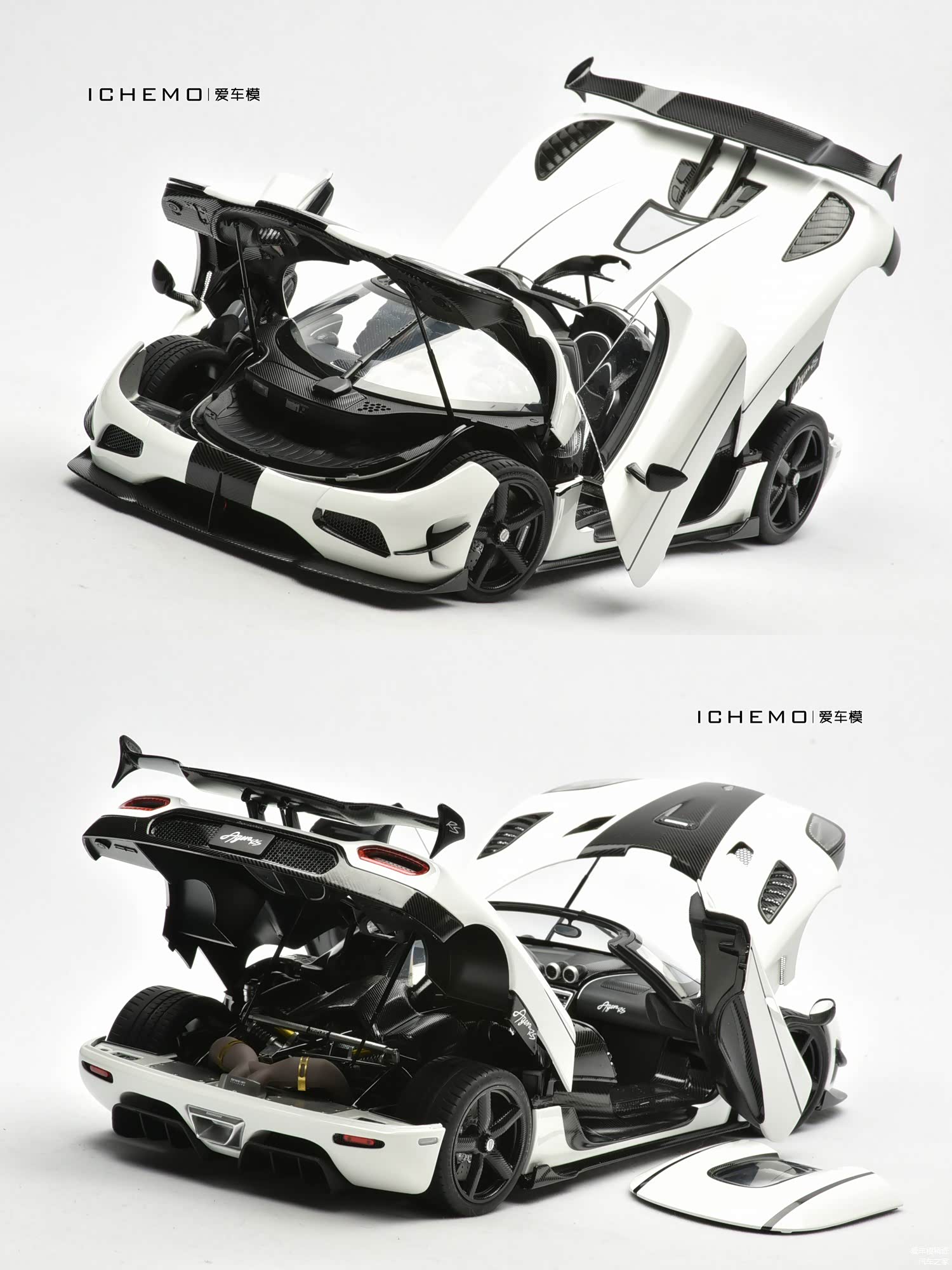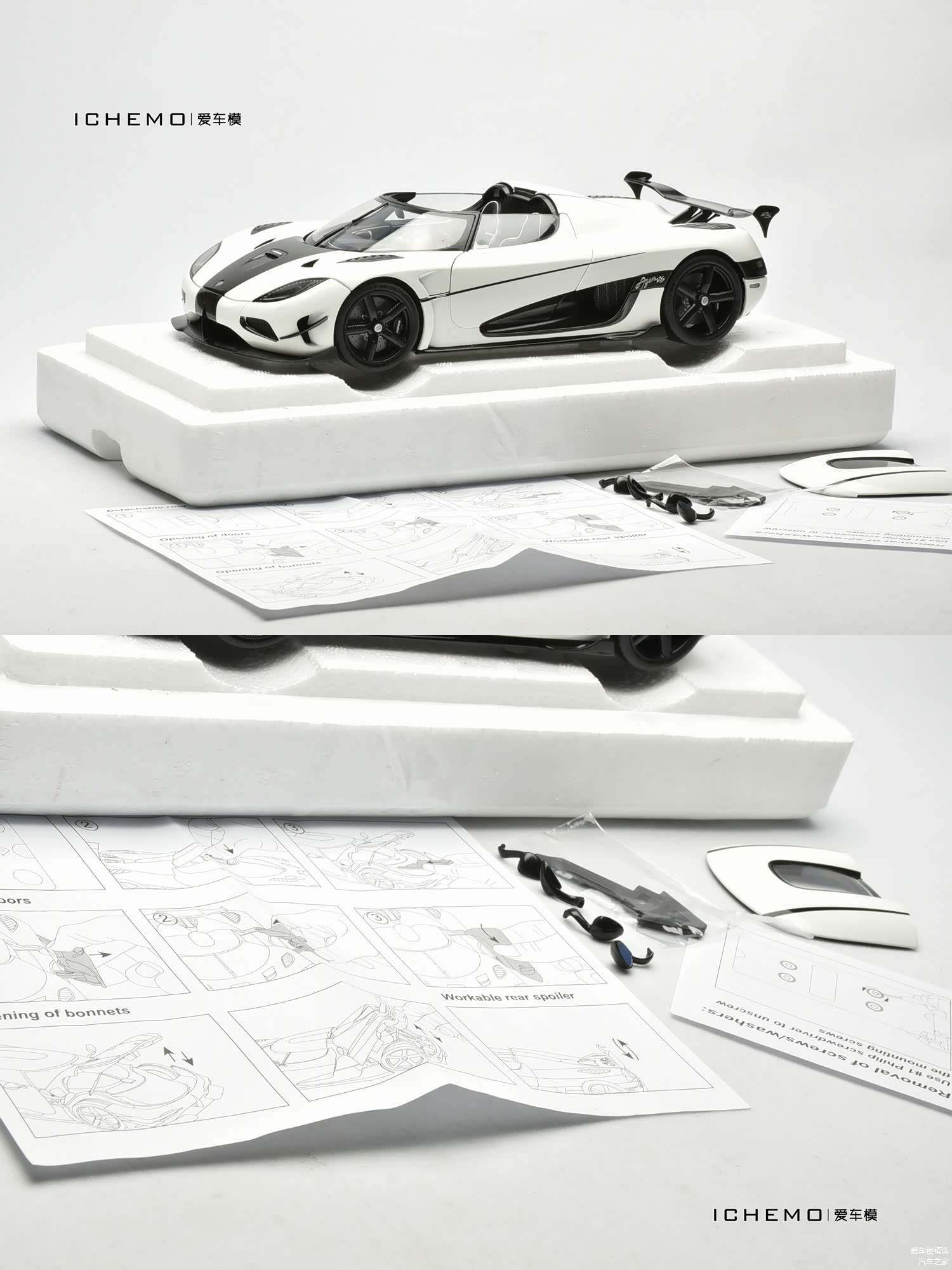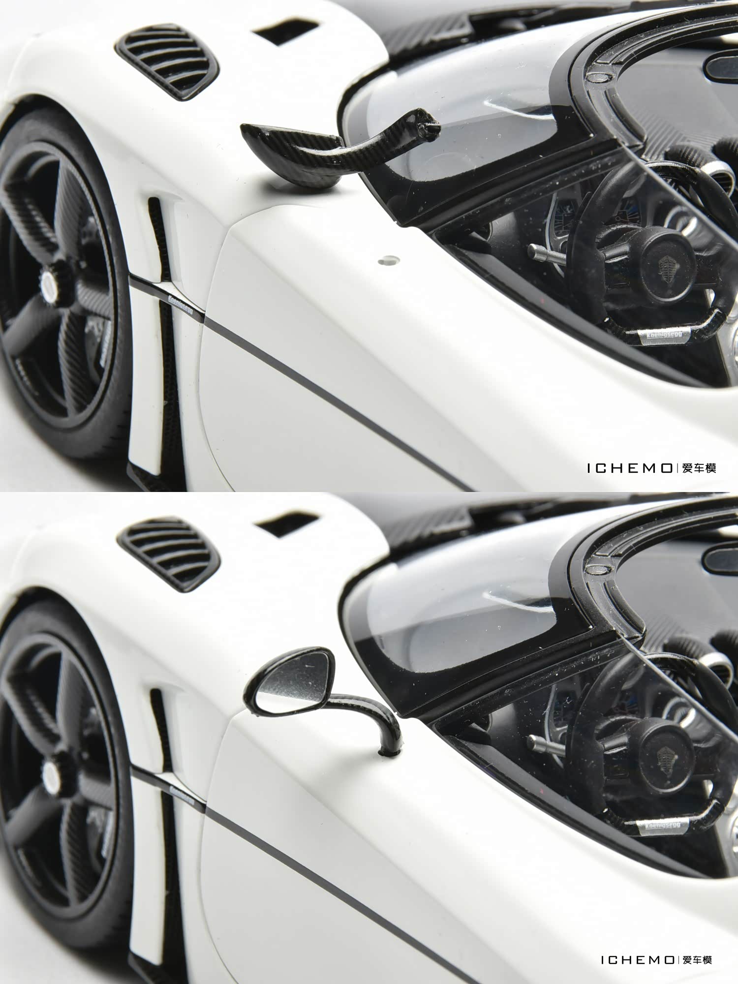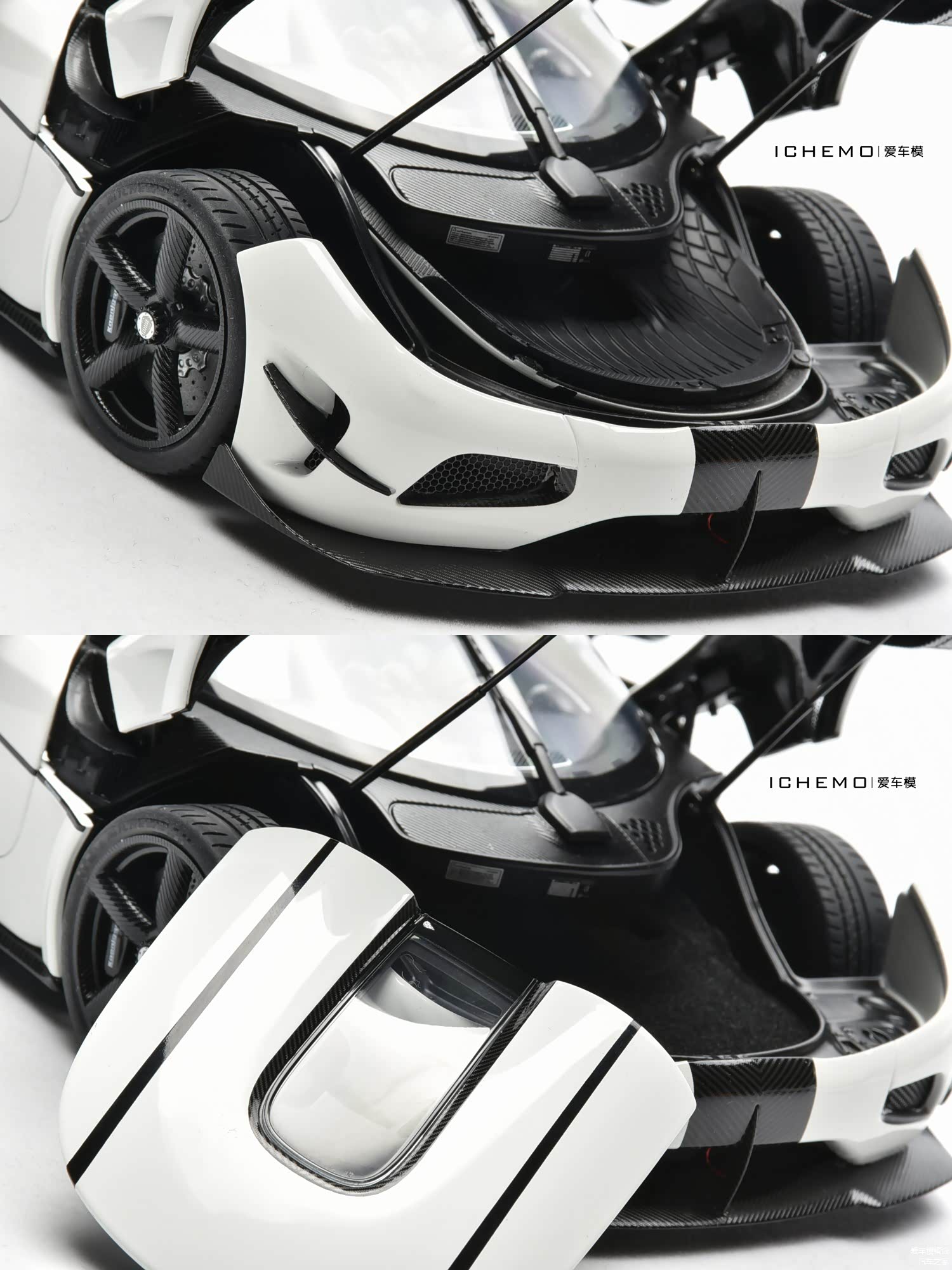 我理解,不可能所有读者都能逐字看到这里,估计有的玩家看到 “塑料” 或 AUTOart 字样便直奔评论区一通口诛笔伐。那么,我们不妨思考一下,AA 这把真用了合金又能怎样呢?哦对了,Agera RS 实车的车体为预浸碳纤维/凯夫拉和超轻夹层增强材料制成。