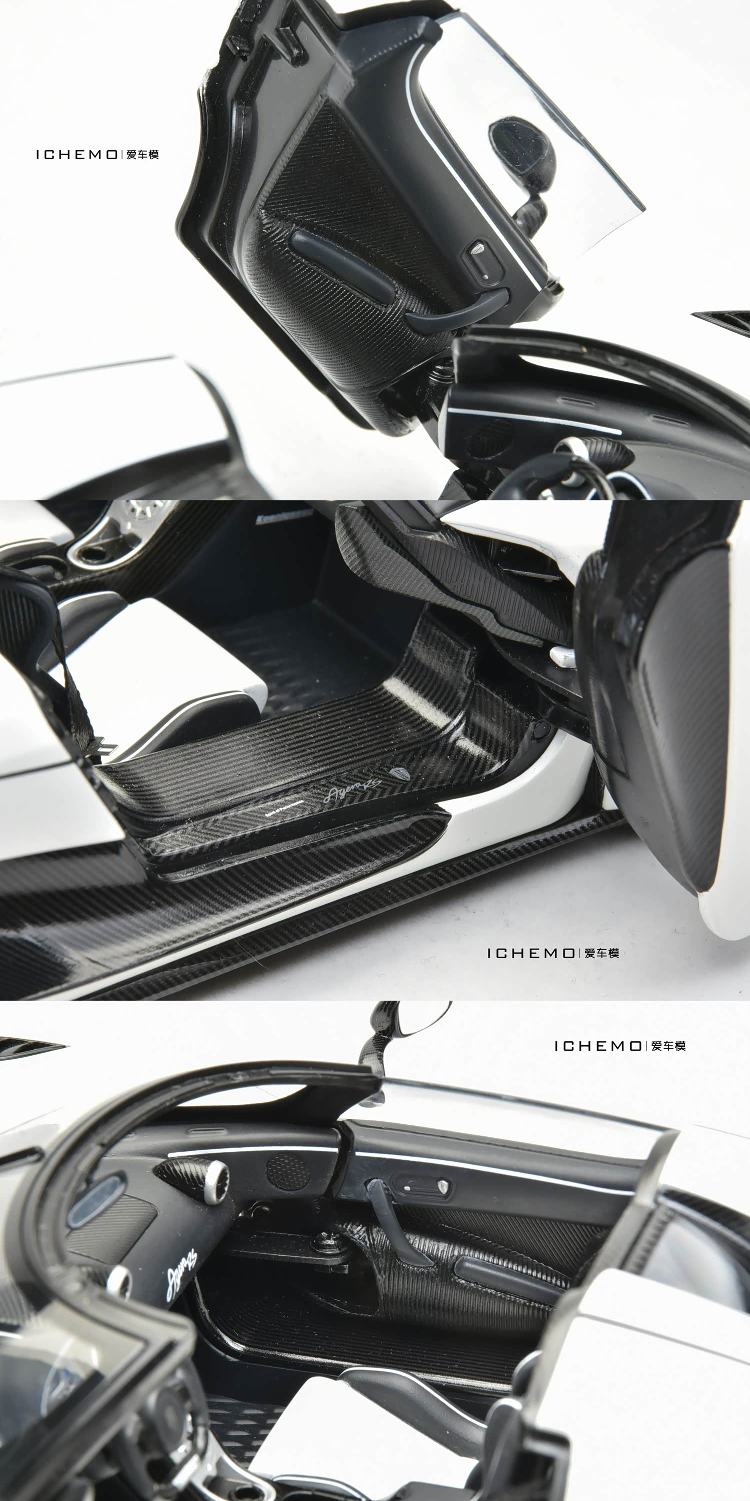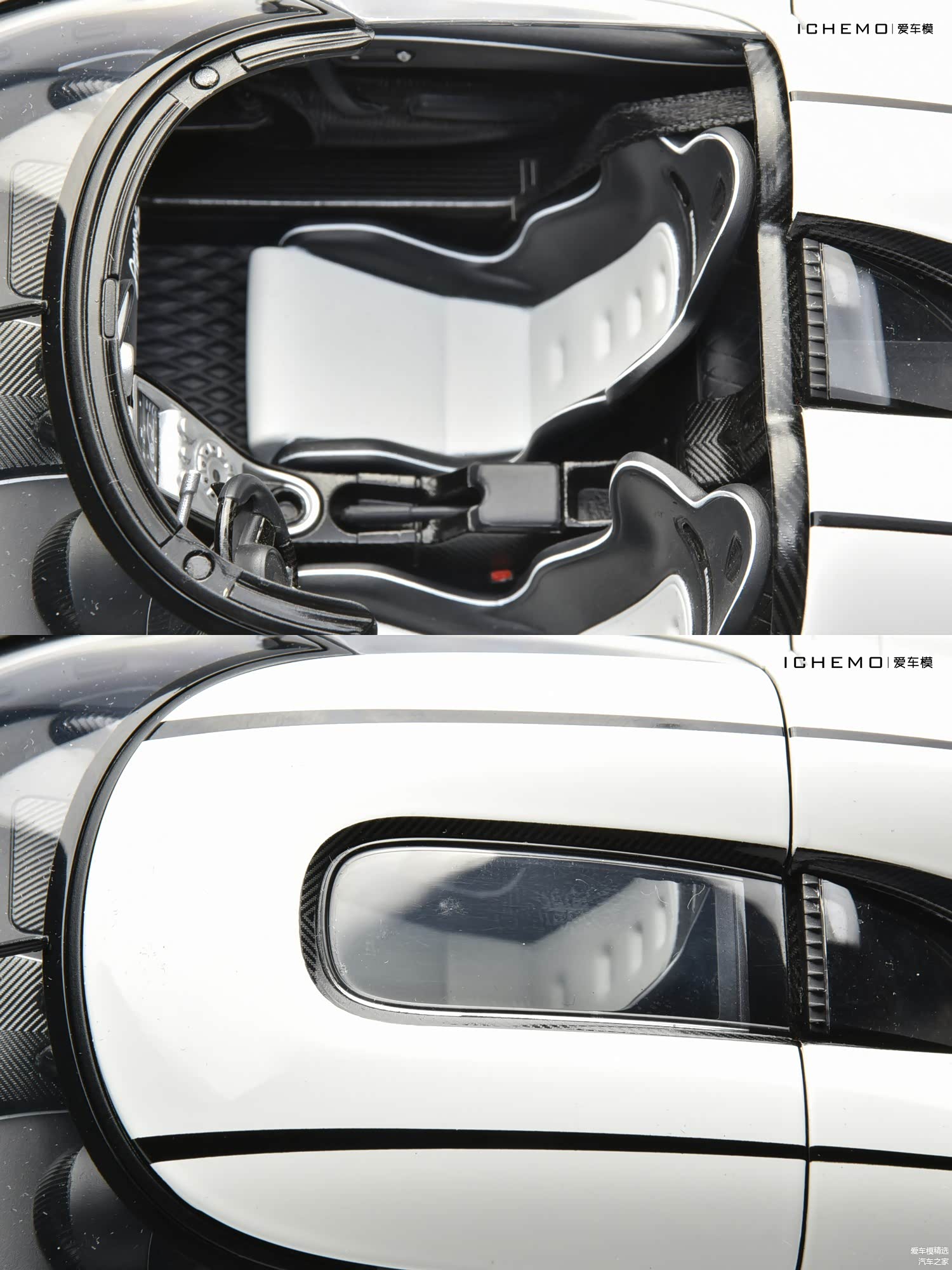 内饰分色多为移印、漆面处理,溢色控制优良,但部分实车细节被模糊或忽略。实际上对于仅 25 台的 Agera RS 来说,相信就算 AUTOart 都无法做到(各色)实地考察,模型设计师的发挥是必然存在的。
