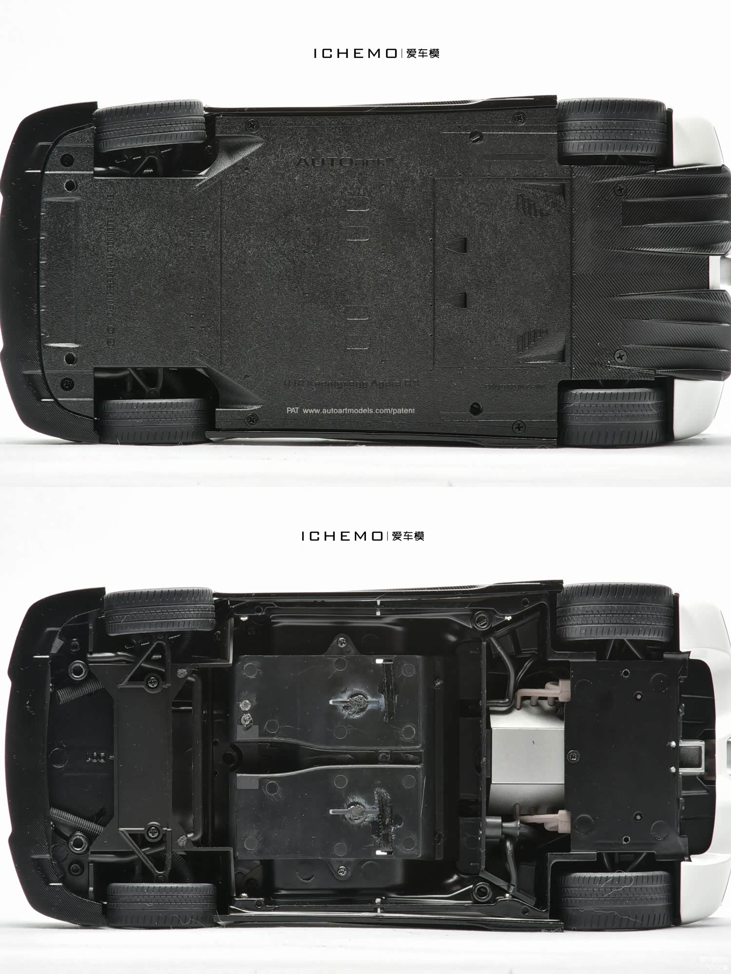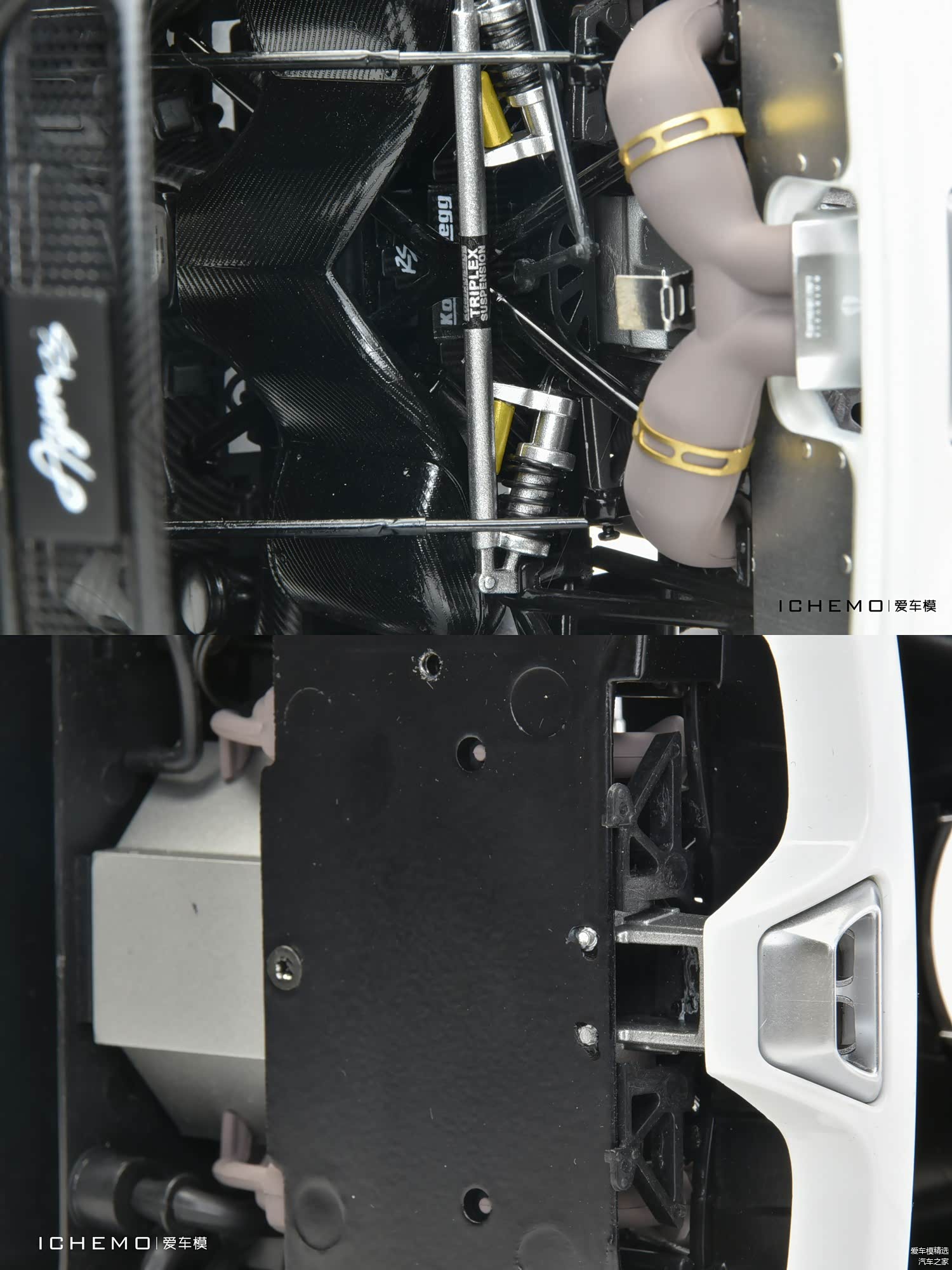 不出意外的 “大平板” 底盘,AUTOart 式刻画 ... 但当你拧下固定螺丝,卸下大底时,Agera RS 的 “彩蛋” 就被发现了 - 这颗被护板挡住的 “发动机”,竟然是接近完整独立的!