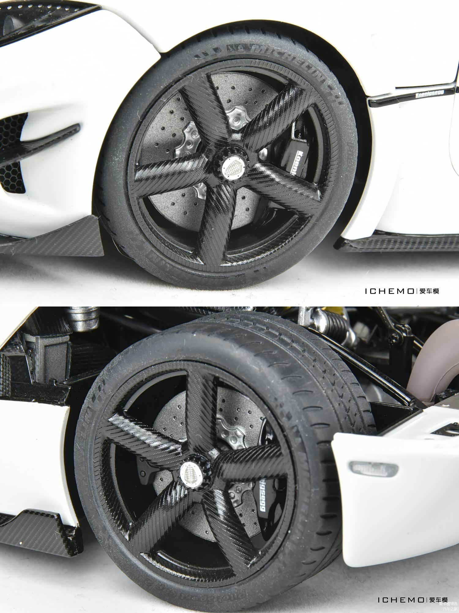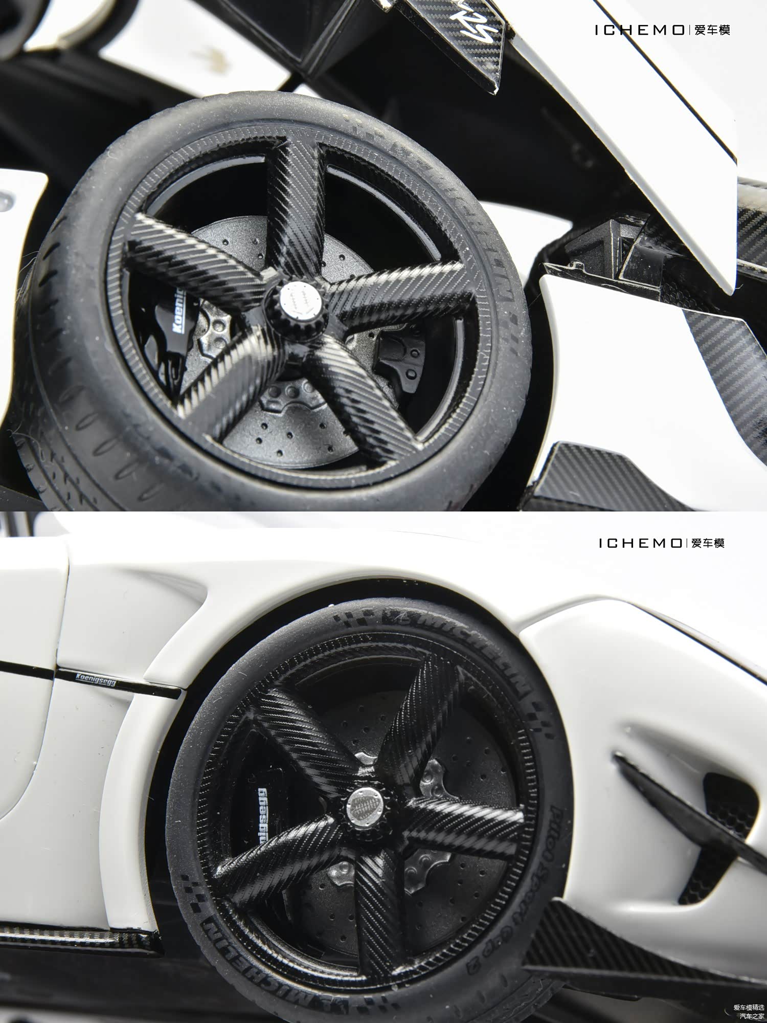 这种独特的轮毂实为 Koenigsegg Aircore Super light hollow 超轻空芯碳纤维车轮,你觉得 AUTOart 做的怎么样?