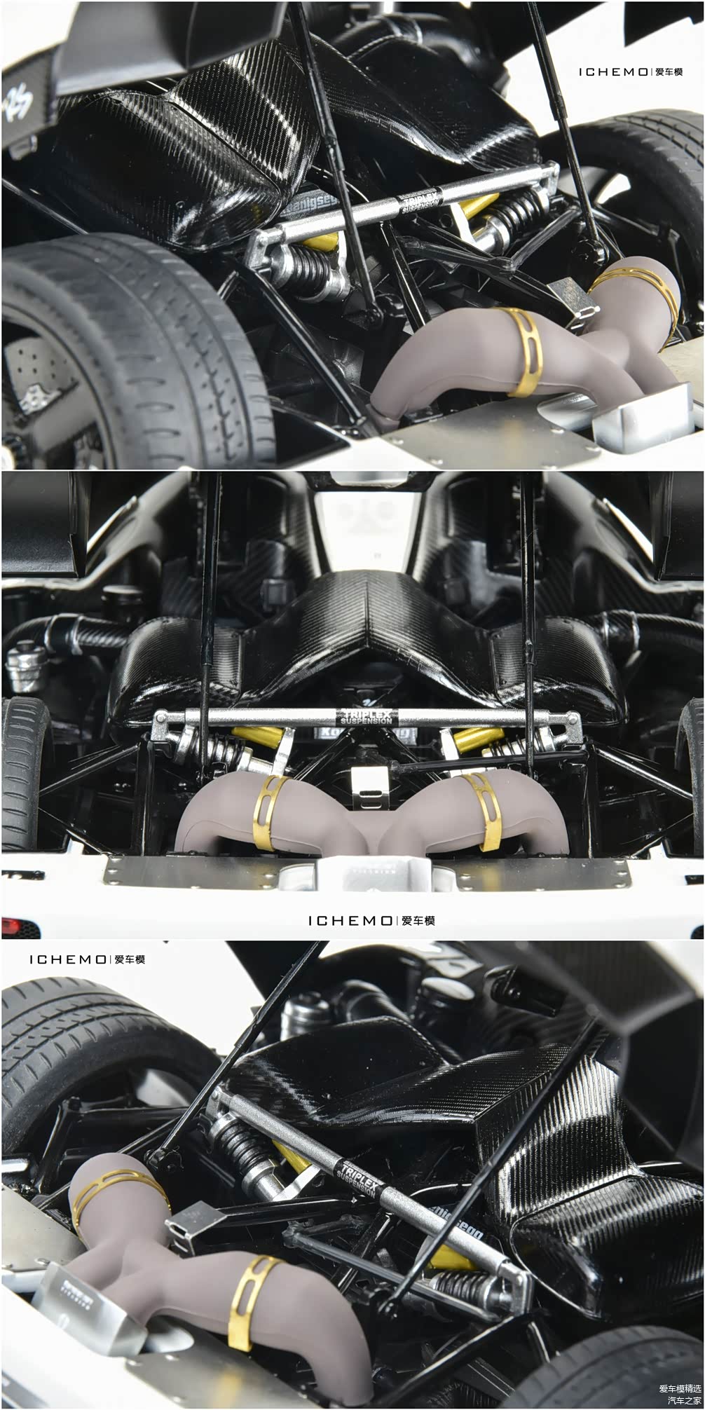 受实车设计影响,于模型上看不到多少 “发动机” 细节,更多的是悬挂、拉杆、车架、排气/管箍等细节;十分可惜的是,看似精密的 “推杆悬挂” 并不能动。然而 ... AUTOart 这次有个小 “惊喜”,请您继续阅读。