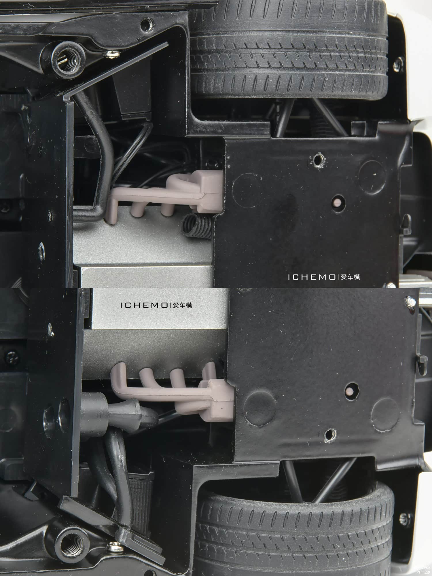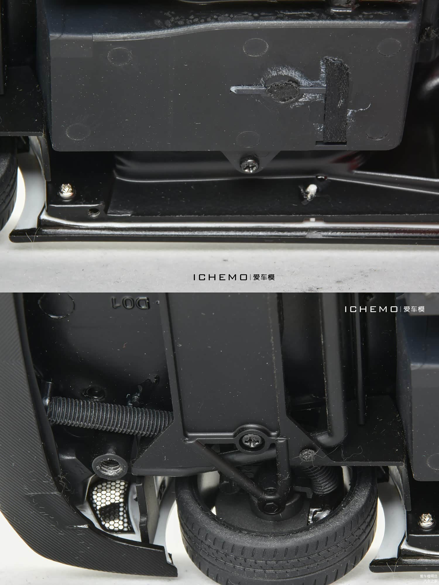 为什么没有继续拆解?一是因为手头没有更多工具,二是 AUTOart 的 “复合材料” 技术设计有别于我们比较熟悉的模型基本结构 - 车体内衬的合金框架组合连接内饰澡盆,除了螺丝固定还有多处胶水粘合。除非经验丰富,否则很难 “全尸” 解剖。