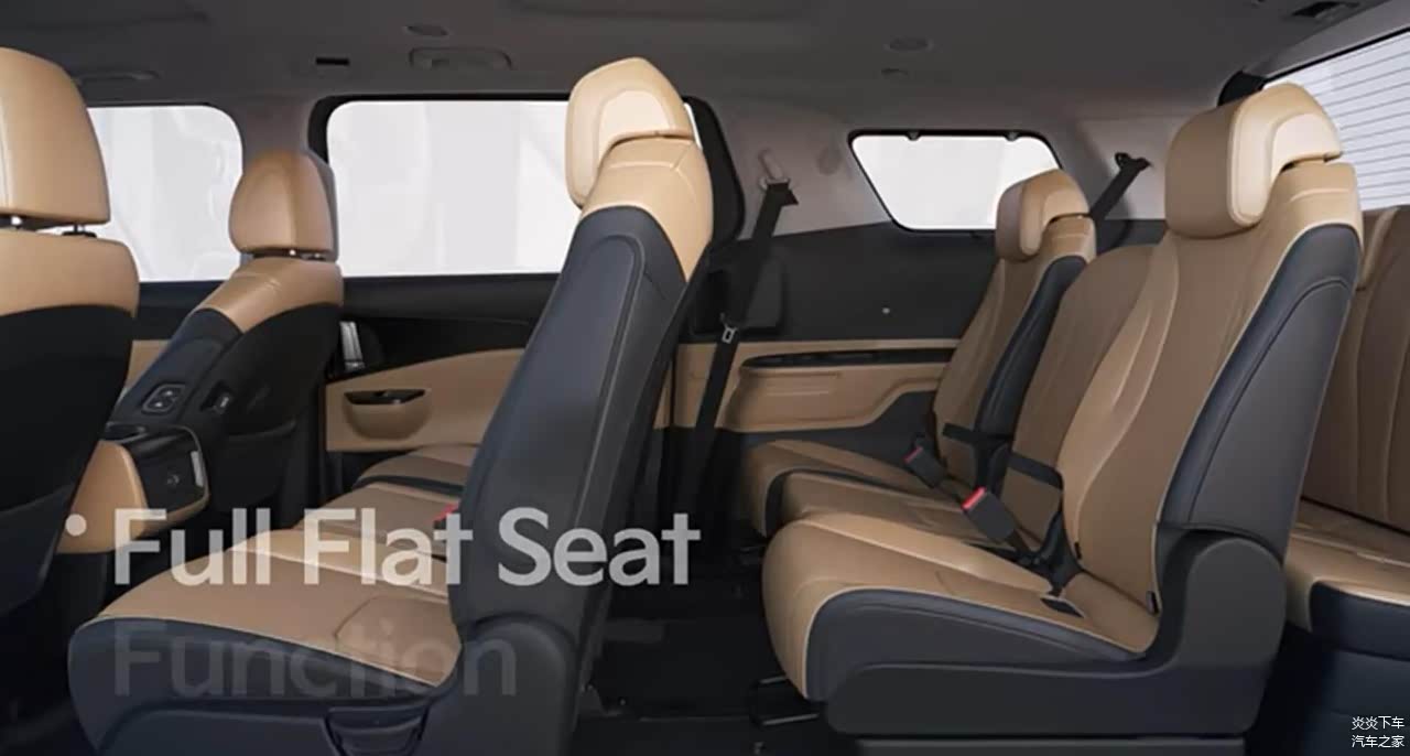 在第三排座椅后方增加了一组可以折叠到地板下方的座椅。在放倒状态下可以当做后备厢使用,拉起状态下则可以提供三个座椅。当然,这次应该也是起亚以展示该车的内部空间为主。回顾一下该车的其它信息。该车外观采用了全新家族式设计,前进气格栅内部的设计错综复杂。