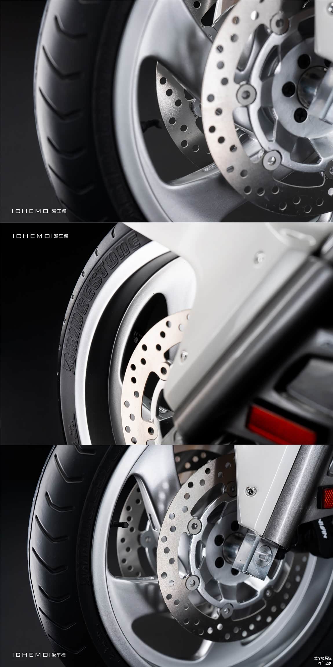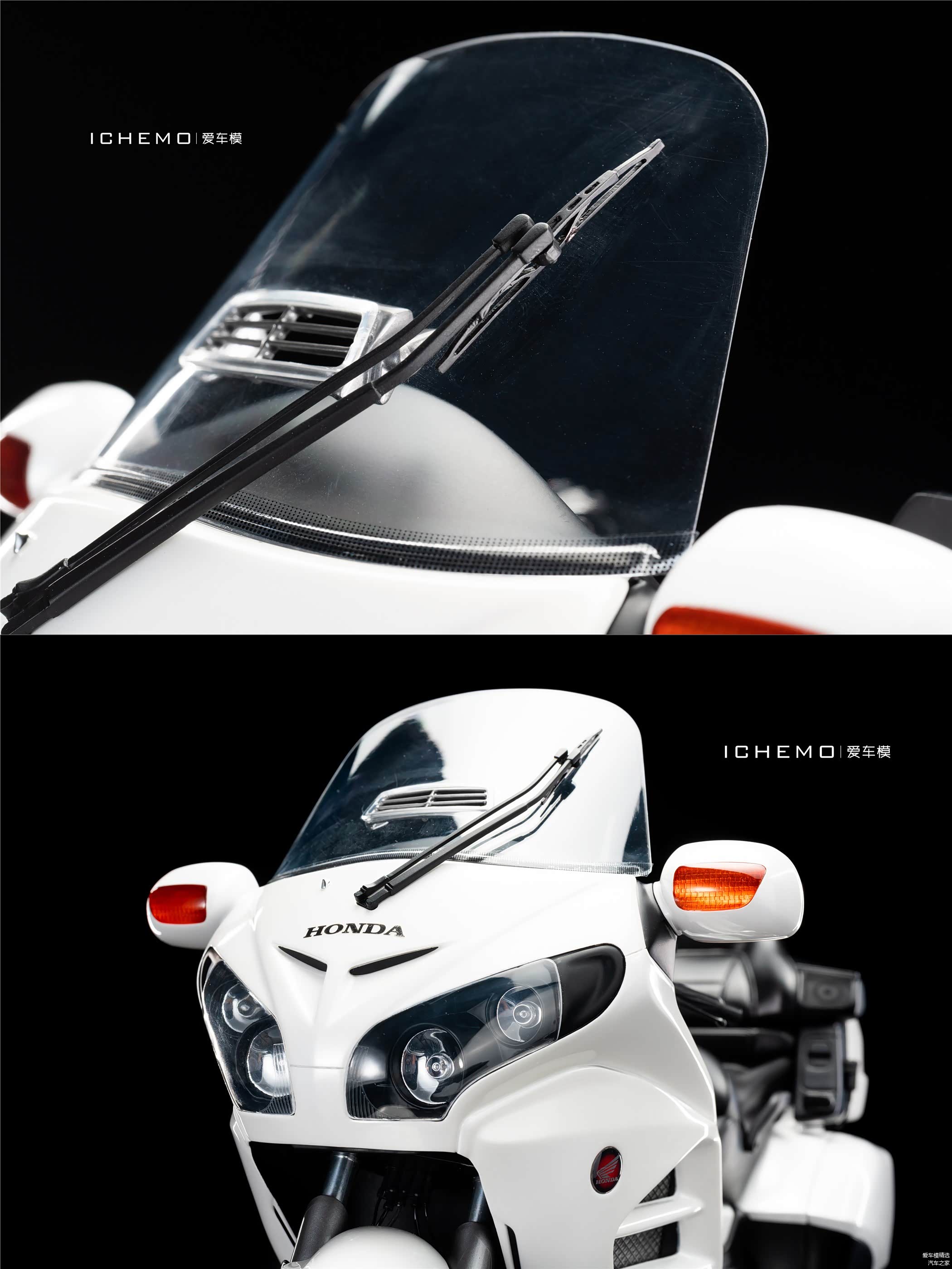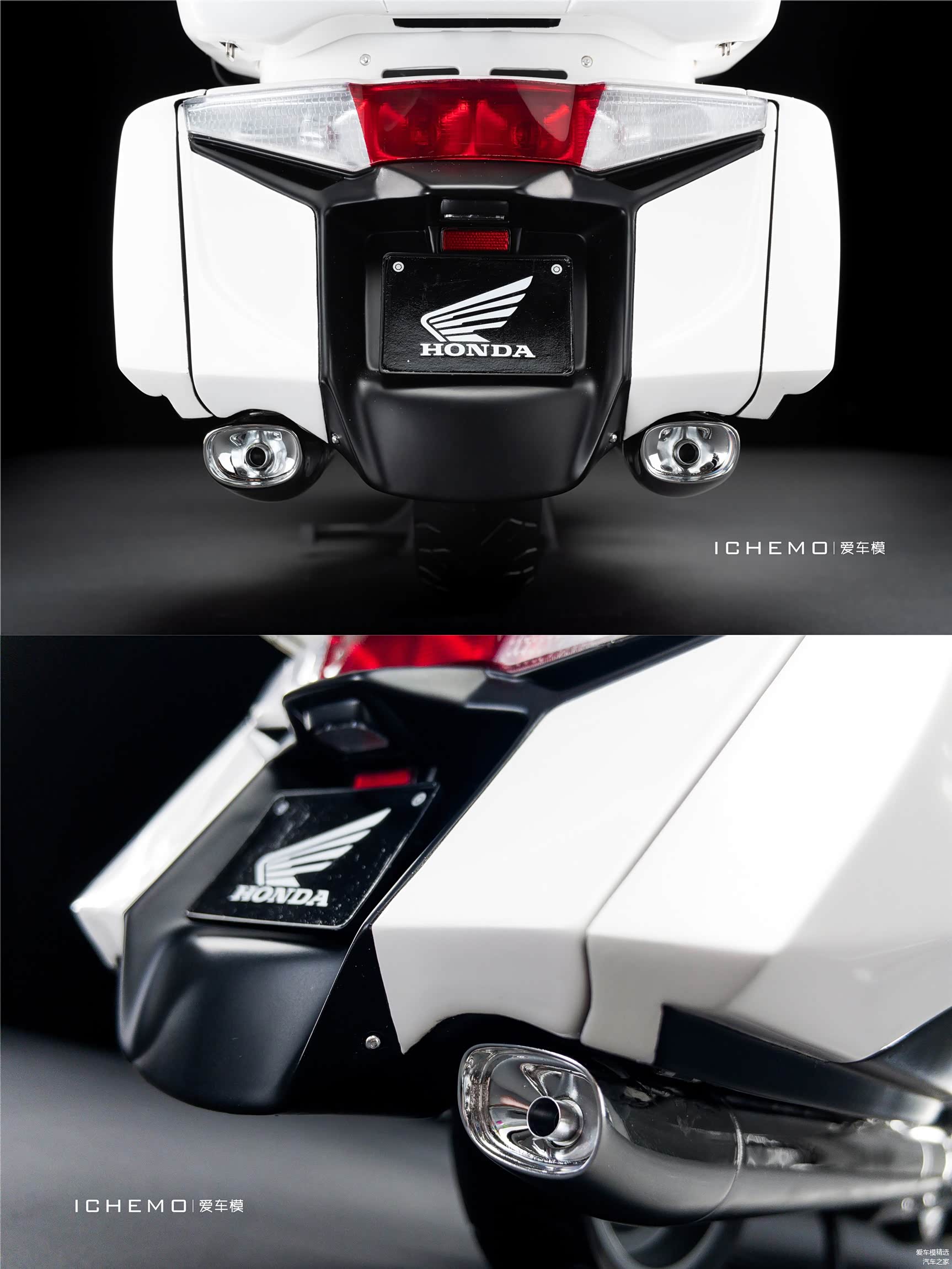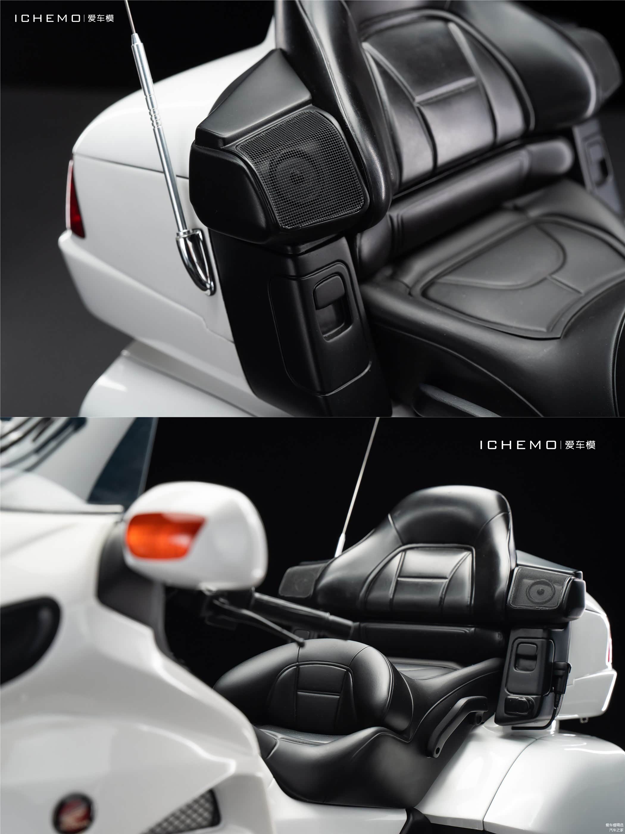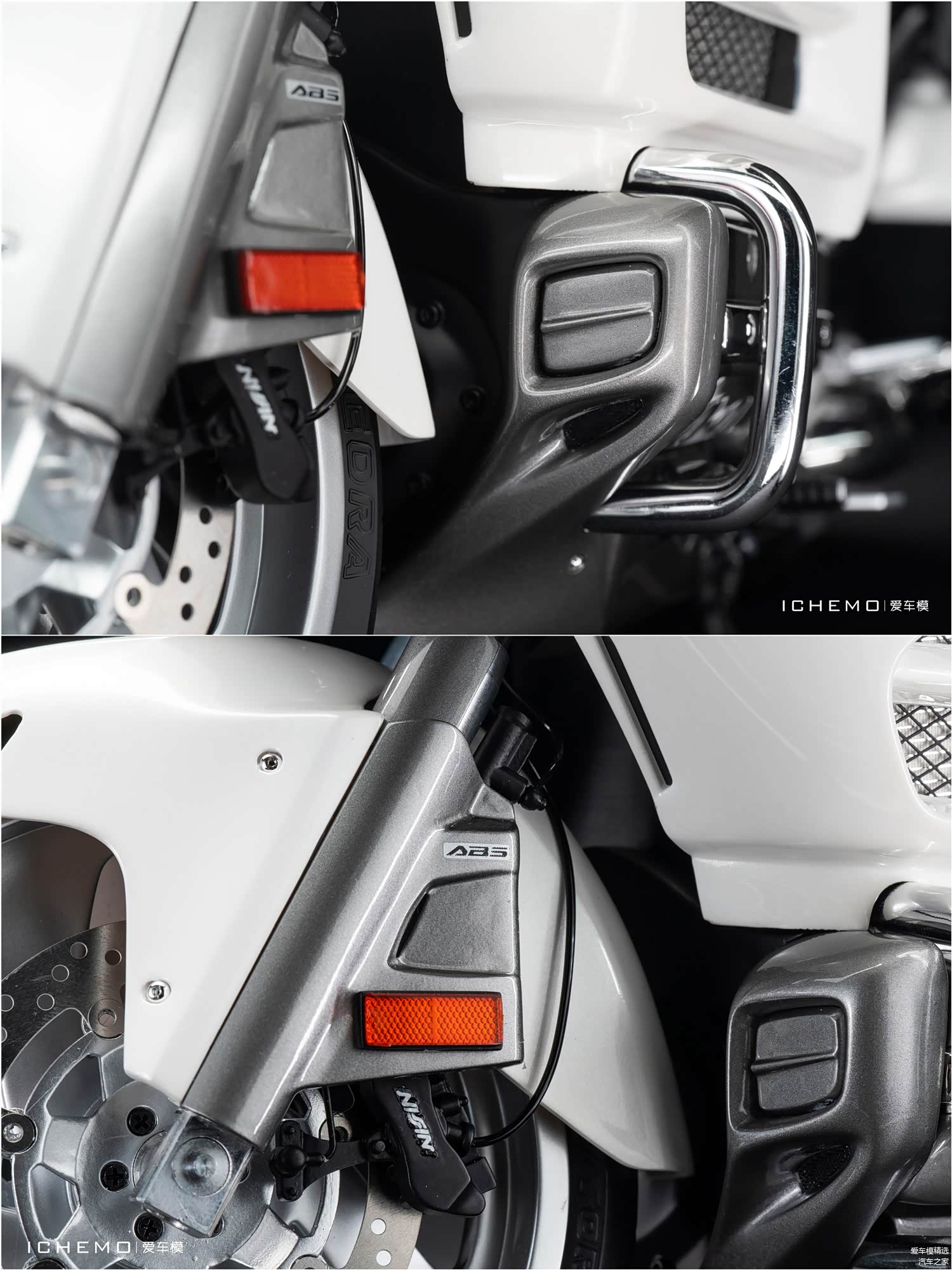经过把玩与认真对比我们发现,量产品与装饰板样品在可动功能设定上无差异,但在工艺细节方面做了较大修改和提升。据了解,模型在开发过程中也得到了不少金翼车主的帮助。这是此比例维度第一款 Gold Wing GL1800 模型,受到了众多摩托车文化爱好者 - 尤其是金翼车主的关注。