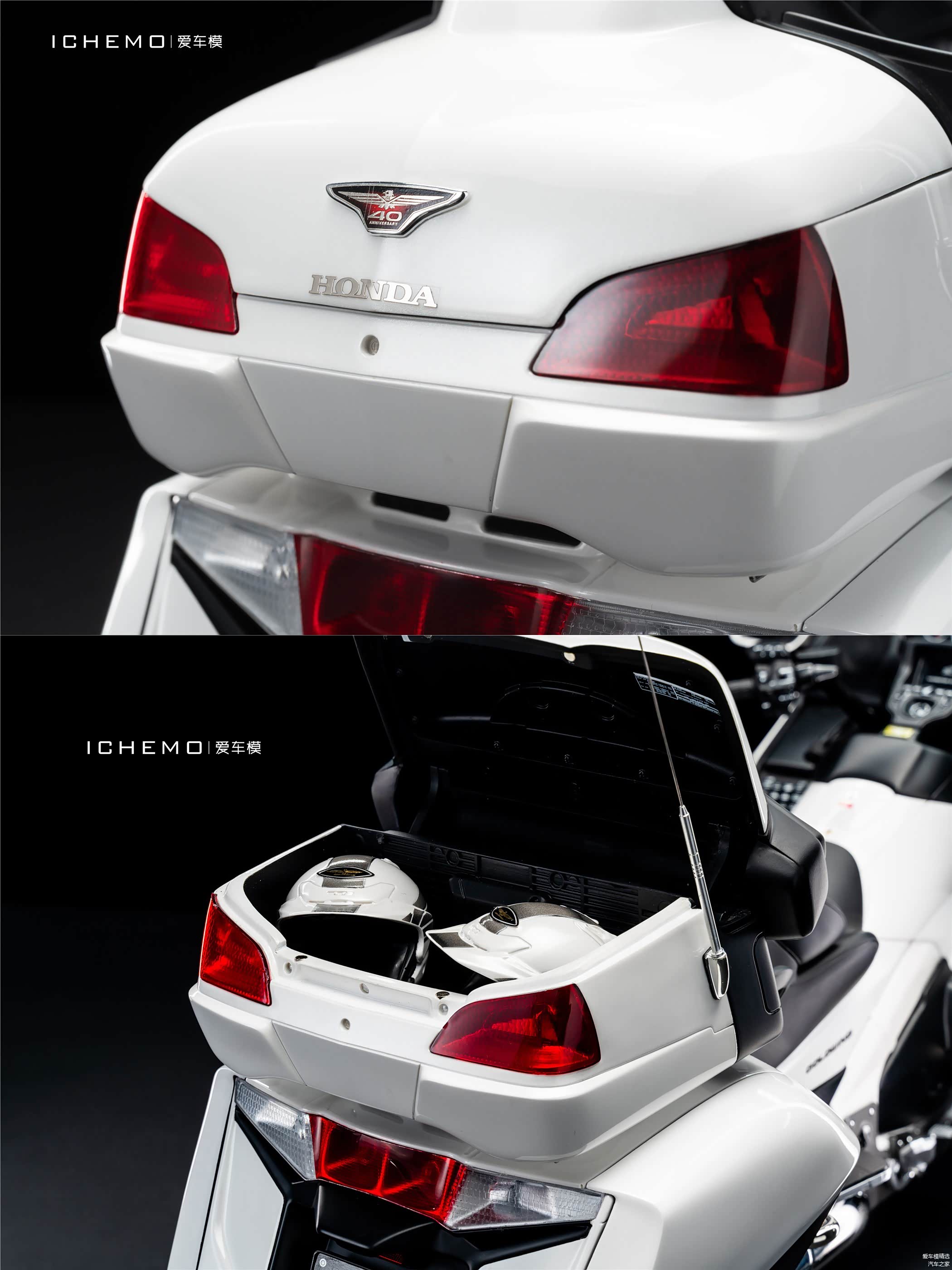 从 GL1000 到 GL1800,目前金翼已发展六代车型。模型制造商 MotorHelix 所还原的是本田在 2014 年 9 月推出的 “40th Anniversary”(40 周年纪念版)Gold Wing GL1800 摩托车 - 车身双拼色和 40 周年徽标是显著特点。