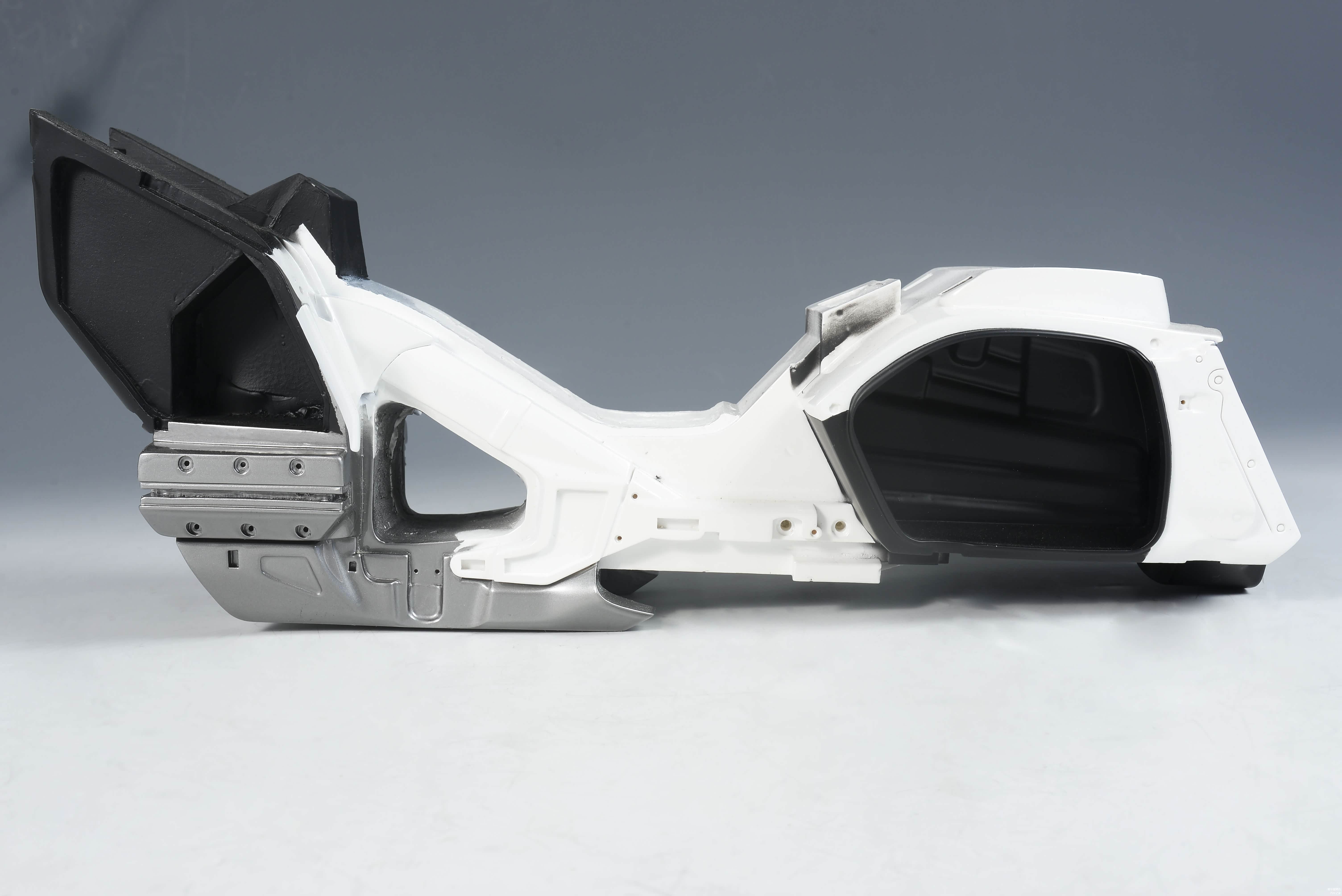 基于体积庞大的考虑,部分配件采用了 ABS 材料,车身主体则为树脂材质;为达优良的漆面效果,除了四道喷油工序还有手工打磨抛光处理。