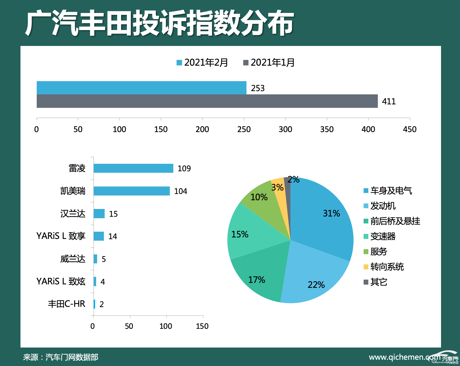 汽车质量投诉点评:广汽丰田投诉指数为253,排名第四,投诉指数高居不下主要受老款车型连累。据车主反馈,老款凯美瑞仪表台老化开裂出油问题依旧严峻。另外,旗下热销车雷凌低速顿挫问题也引发车主不满。
