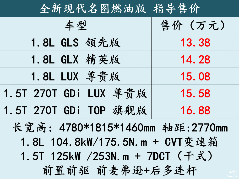 燃油版共5款车型,3款1.8L车型,2款1.5T车型,售价区间13.38~16.88万元。相对而言,1.8车型更适合家用,花费也更低。采用了四轮独立悬挂,相比一般的A级轿车要有更加出色的表现。质保很有意思,可选三年或15万公里、五年或10万公里和七年或7万公里三个方案,显然后面两种方案更适合作为家用车消费者选择。