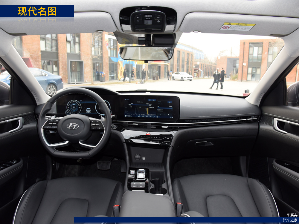 新能源版本的名图采用了封闭式格栅设计,显得有些复古范儿,尺寸略大一点,黑白内饰比较好看,机舱布局与燃油车差别不大,集成度不高。