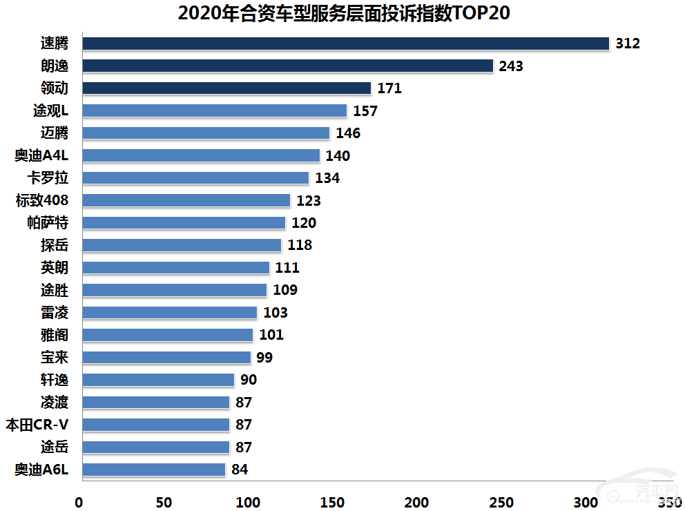 本期内容,我们就结合2020年度用户投诉反馈数据,看看哪款合资车型的服务最差劲。