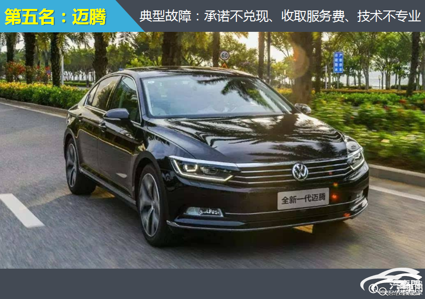 投诉点评:一汽-大众旗下热销车型迈腾,车主在售后服务方面投诉主要有承诺不兑现、收取服务费、技术不专业。其中承诺不兑现主要表现在旧车置换补贴不兑现、口头协议不履行等;乱收费包括发票价格与实际缴纳费用不符、强制购买保养服务等;技术不专业则主要体现在三方面:多次返修故障依旧;维修后出现新问题;检修不出问题原因。