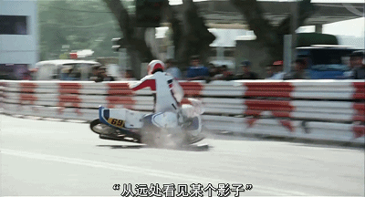 阿郎骑着摩托在赛道上风驰电掣