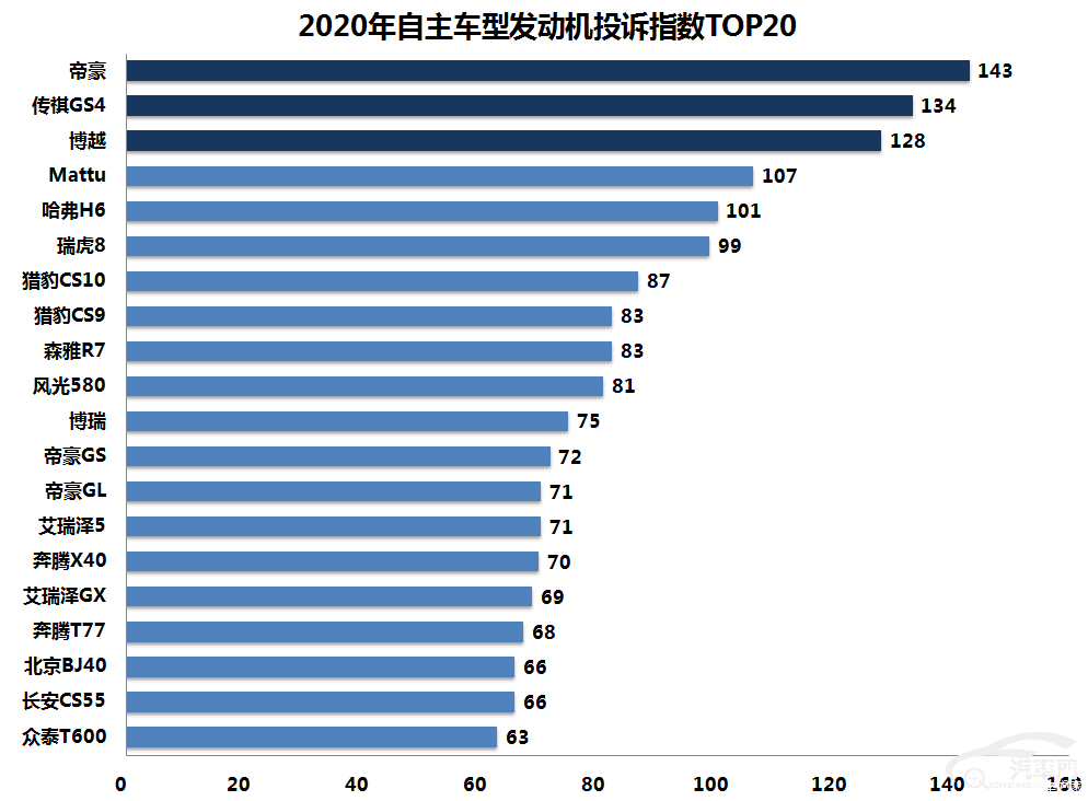 从2020年度汽车门网自主车型发动机投诉指数排行来看,上榜车型大概可分为两个阵营,一方是当下畅销车型,另一方是销量几乎停摆车型。先看榜单前三车型都是当下热销车型,其中吉利旗下帝豪、博越发动机均存在异响抖动情况。与此同时,瑞虎8、哈弗H6等销量担当也因发动机故障被车主吐槽。除此之外,对于濒临退市的猎豹汽车而言,前十榜单中,涉及旗下Mattu、猎豹CS10 、猎豹CS9三款车型,并且不少车主还将面对经销商倒闭的无奈。