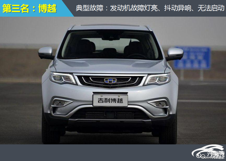 投诉点评: 作为国产suv的标杆车型,博越销量一直都很高。不可忽视的是,热销背后也暗藏了不少质量问题。其中发动机故障主要表现为发动机故障灯亮、抖动异响、无法启动。从投诉车型年款看,2016款车型遭到广泛投诉,并且车辆在气温低时发动机无法启动。