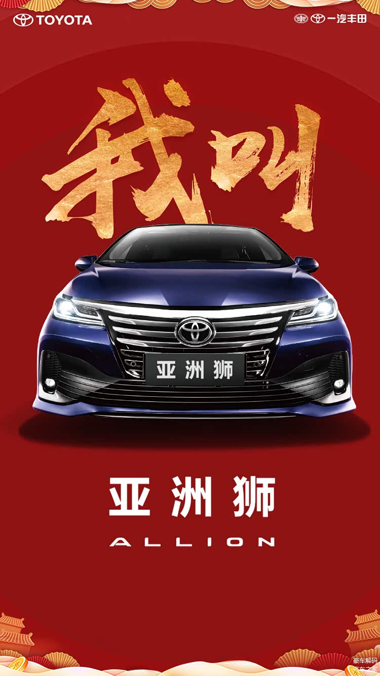 3月2号,一汽丰田第二次官宣新车ALLION的中文名,这次叫“亚洲狮”。并宣布新车将于3月底上市。