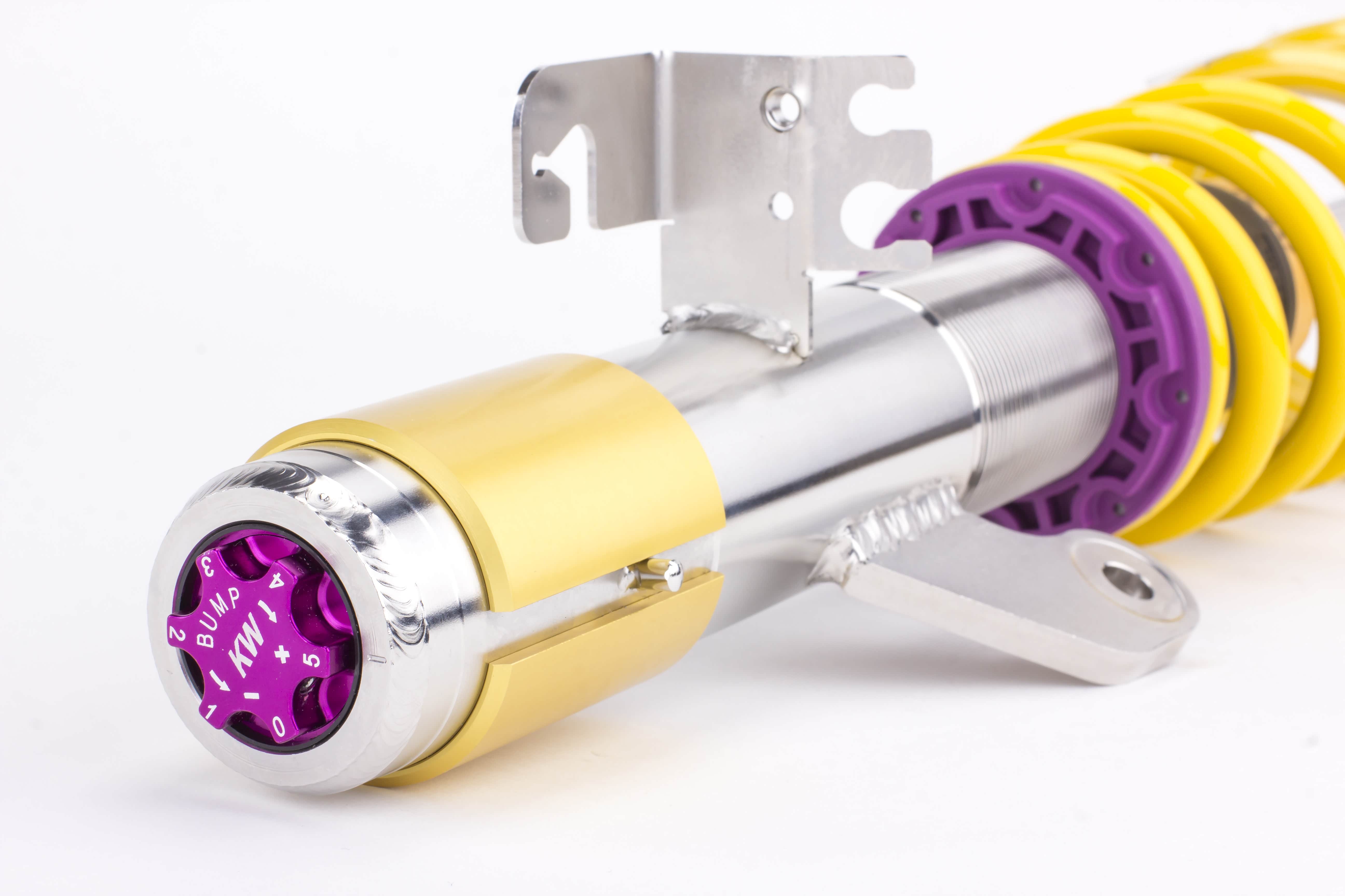 如果你已经在爱车上做出了一些操控上的改装,那么KW V3将进一步满足你的要求。你可以通过我们专利的KW-valve技术来独立调整回弹阻尼和压缩阻尼。底部的滚轮可以分12段精确调节压缩阻尼。
