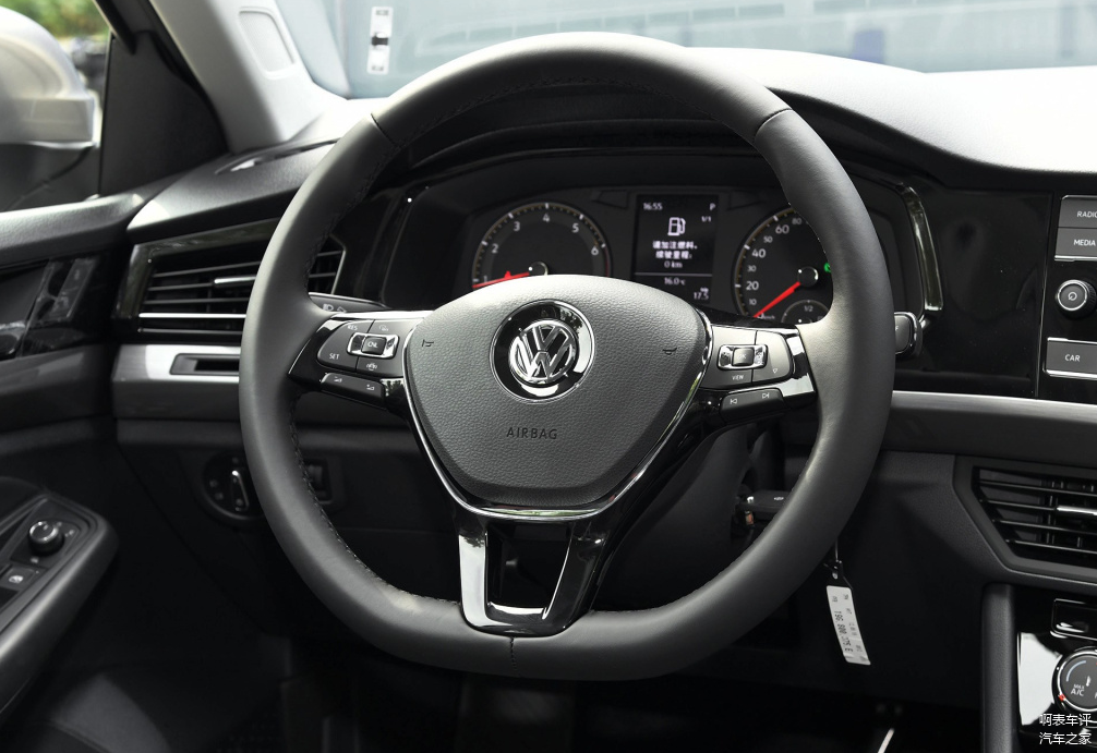 内饰方面,作为改款,大众宝来内饰变化并不大,即便是2021款,放在当前市场也说不上时尚,整体风格稍显沉闷,偏向于家用,是那种老少皆宜的设计。整个中控采用环抱式设计,各个区域功能划分很清晰,操作起来比较方面,方向盘为平底三辐式设计,低配车是塑料,高配车有真皮包裹,手感还行,低配车型没有配备实体按键,光秃秃的方向盘看起来有些为何,而10万的价格也只能买到低配车型,估计很多人接受不了,高配车型还行,功能方面算是齐全了。