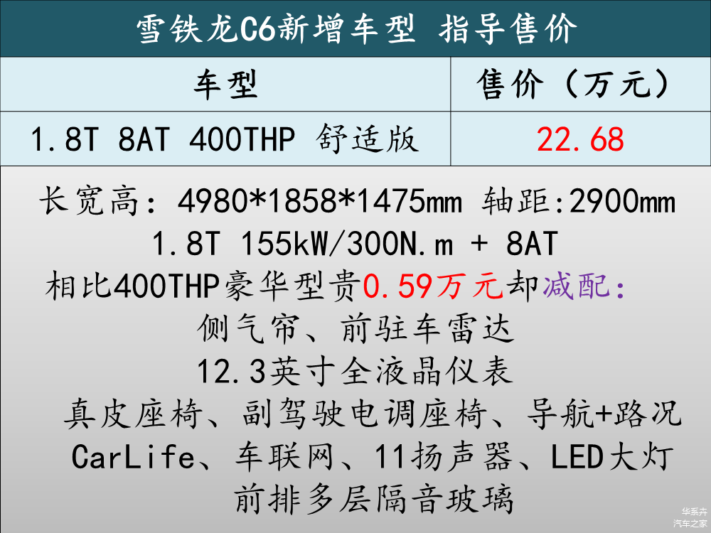雪铁龙推出了C6新增车型——舒适版,这是一款号称对主流中型轿车降维打击的产品,随着竞品更新换代,C6的尺寸优势越来越小,而新增车型却是减配提价的操作。