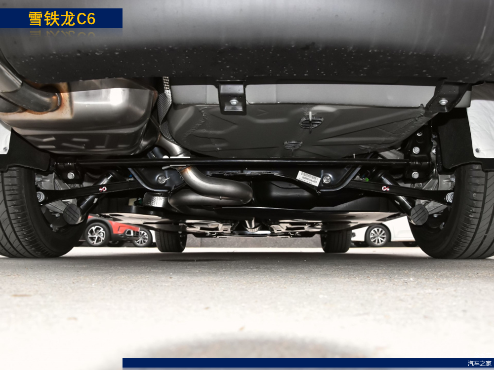 雪铁龙车型少有的前麦弗逊+后多连杆独立悬架,铝合金车轮架硕大,连杆设计也很独特,横向稳定杆很粗壮,综合驾驶感受就是越快越稳。底盘很平整,排气布局和工艺优秀,采用了单边排气设计。