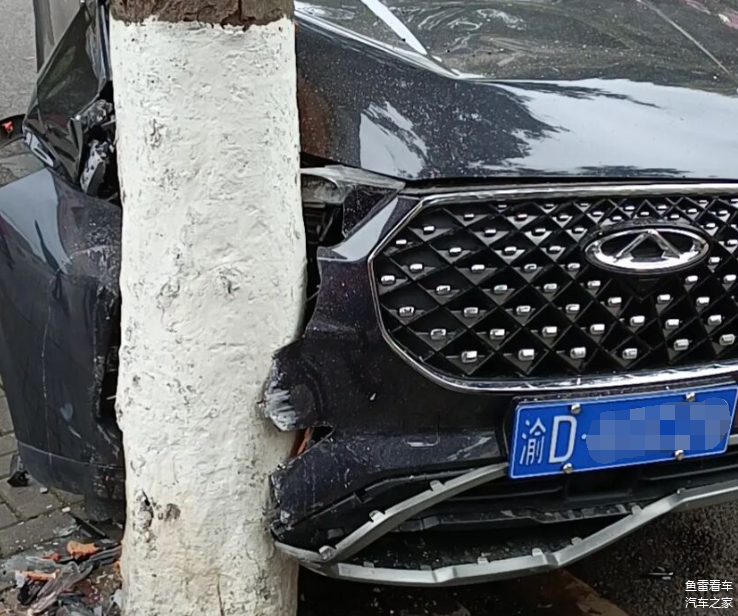 瑞虎8Plus刚刚上市不久,不过整车其实就是基于瑞虎8改进而来,因此整车结构实际上相差无异,其实光看两车的侧面就能明白了,瑞虎8Plus对比瑞虎8几乎没有任何变化,安全层面而言自然也是一脉相承,不过说归说,即使瑞虎8有大量的实战经验,也不能完全代表瑞虎8Plus,而就在近期重庆一台瑞虎8Plus的小撞击事故到是带来了一些不同的效果,这次不是怼车,直接怼上了路边较粗的大树。