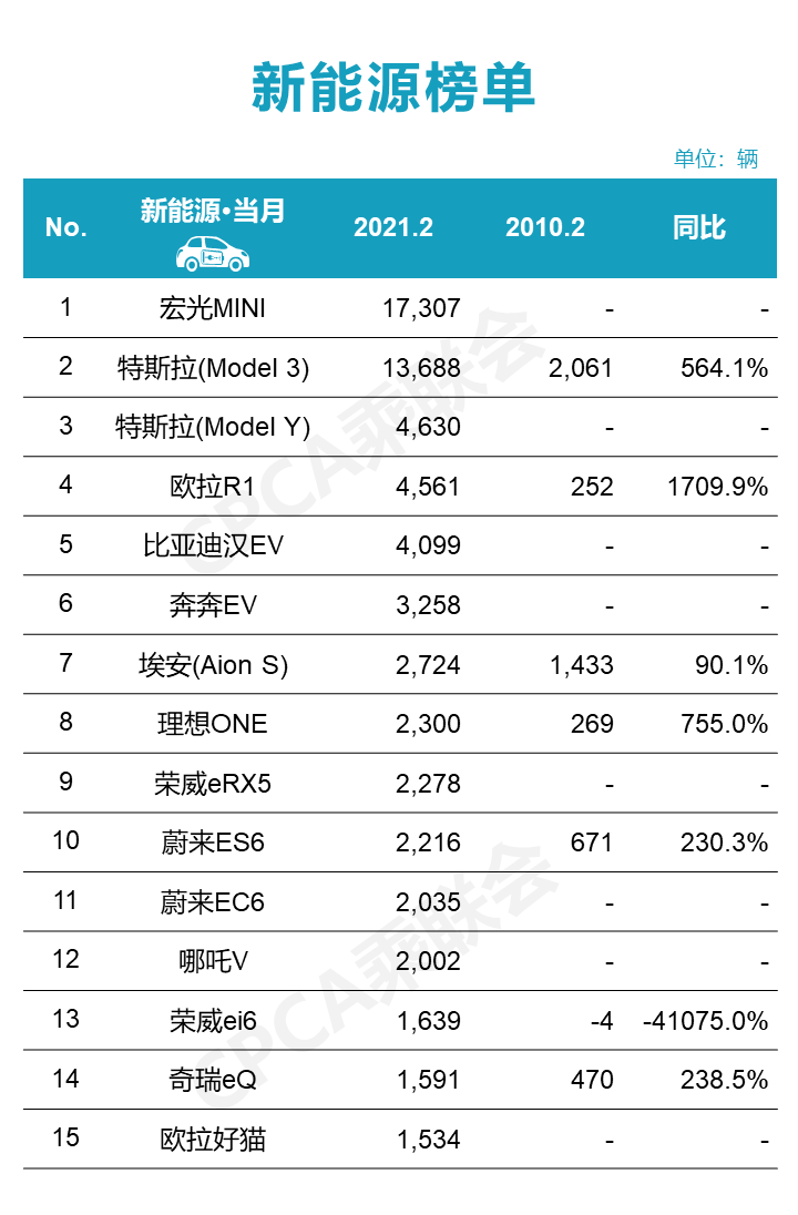 但是,本月特斯拉有两款车型入榜,总销量超过宏光MINI EV销量。