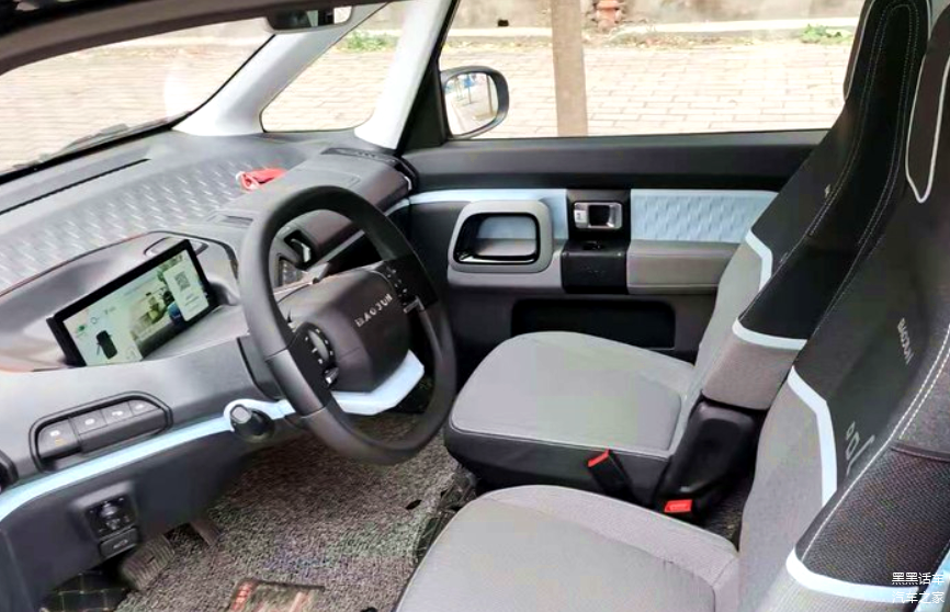 新宝骏E300外观比较方正,同时,车身大量使用倒圆角元素,不仅可爱,还具有科幻未来感。 新宝骏E300(图片 | 参数 | 询价)提供三座/四座两种布局方式,车身尺寸方面,以新宝骏E300四座版为例,长宽高分别是2894/1655/1595mm,轴距2020mm。在内饰和配置上,首先令人注意的是采用了大量的天然植物纤维材料,安全健康方面得以保证;配有液晶显示屏,具有蓝牙、导航、倒车影像等功能。