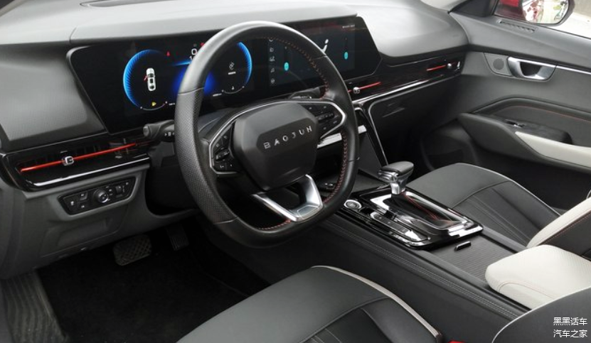 内部也符合一款中型车的配置定位,采用12.3英寸全液晶仪表盘和12.3英寸中控液晶屏,并配有车道保持辅助、车道偏离警告、弯道巡航辅助等安全驾驶辅助功能。