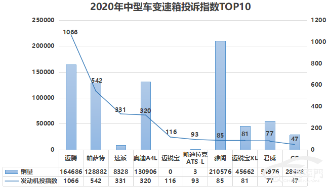 近期以来,汽车门网陆续对2020年度合资车企/车型、自主车企/车型的发动机、变速箱、车身电气和服务投诉指数进行了盘点。接下来,我们将对中型车年度变速箱投诉指数TOP10进行分析。