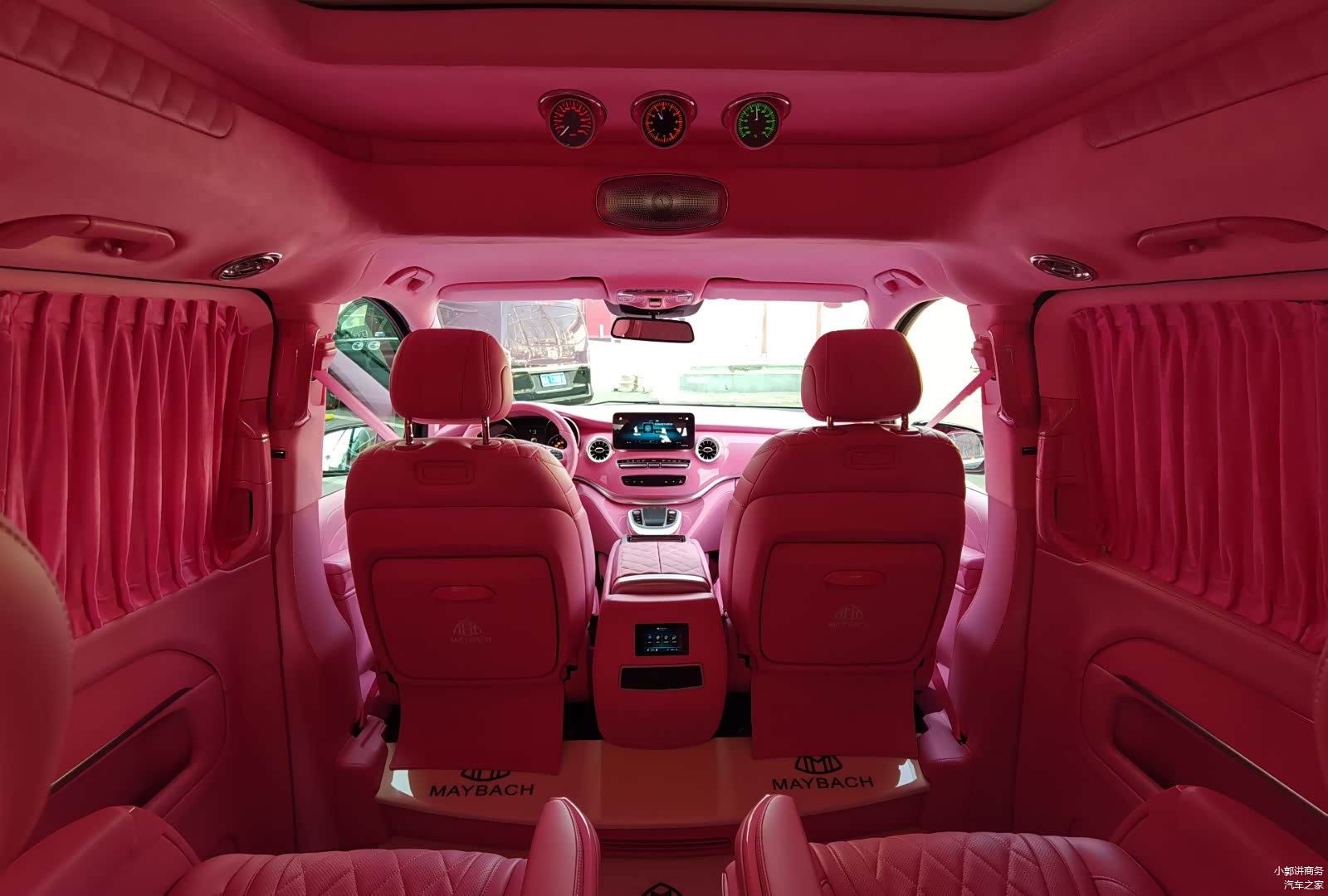 这款猛男芭比粉的迈巴赫VS980L全车采用了全车粉色内饰的设计,粉红色的桃木装饰板,粉红色的真皮包覆,粉红色的麂皮绒包覆,真是萌萌的少女心。