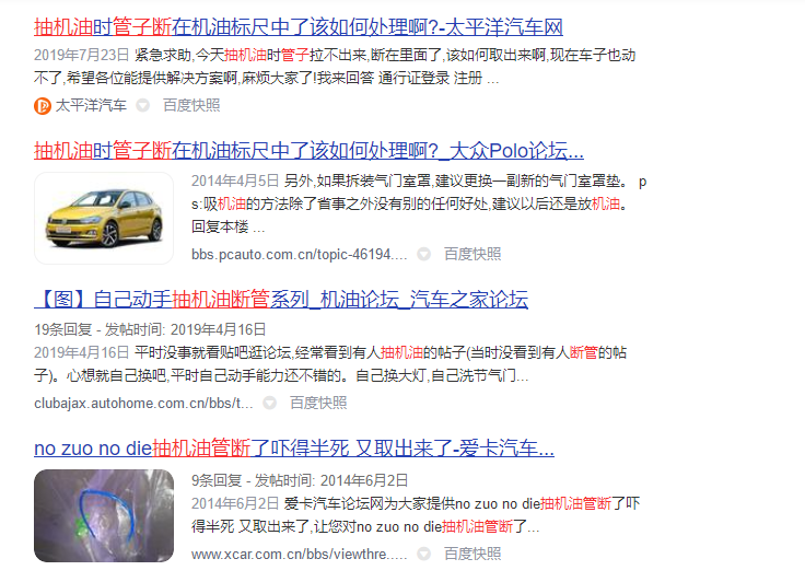 比如,EA111发动机由于发动机内部设计结构的问题和油尺管路很细,就非常不适合抽机油。
