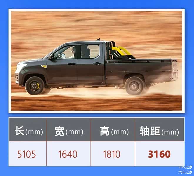 毕竟是一款城市型小型皮卡,因此五菱征途有着长宽高5105/1640/1810毫米的三围尺寸,轴距则为3160毫米。根据售价和定位来看,新车的竞品车型主要为中兴小老虎和长安凯程神骐F30等车型,但从车型属性的细分领域来看,征途实际上并没有直接竞争对手。