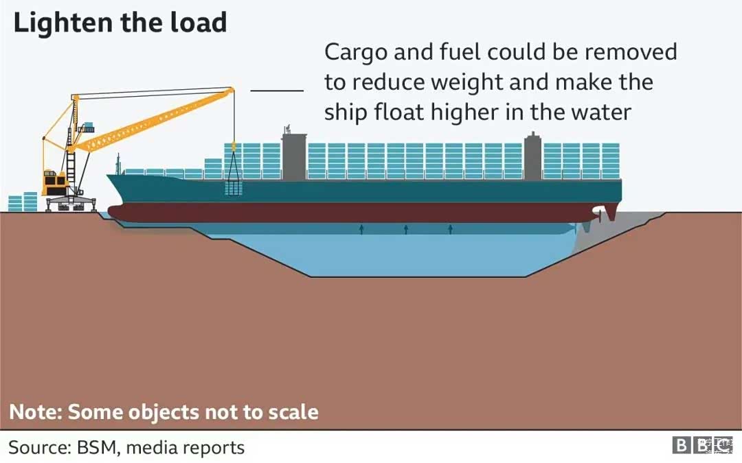 一些海洋打捞专家表示,在拖船和挖掘机失败后,“自然的力量”可能会成功。等到3月28日或29日,季节性涨潮到来,可能会给运河增加大约18英寸的深度,让船浮起来。