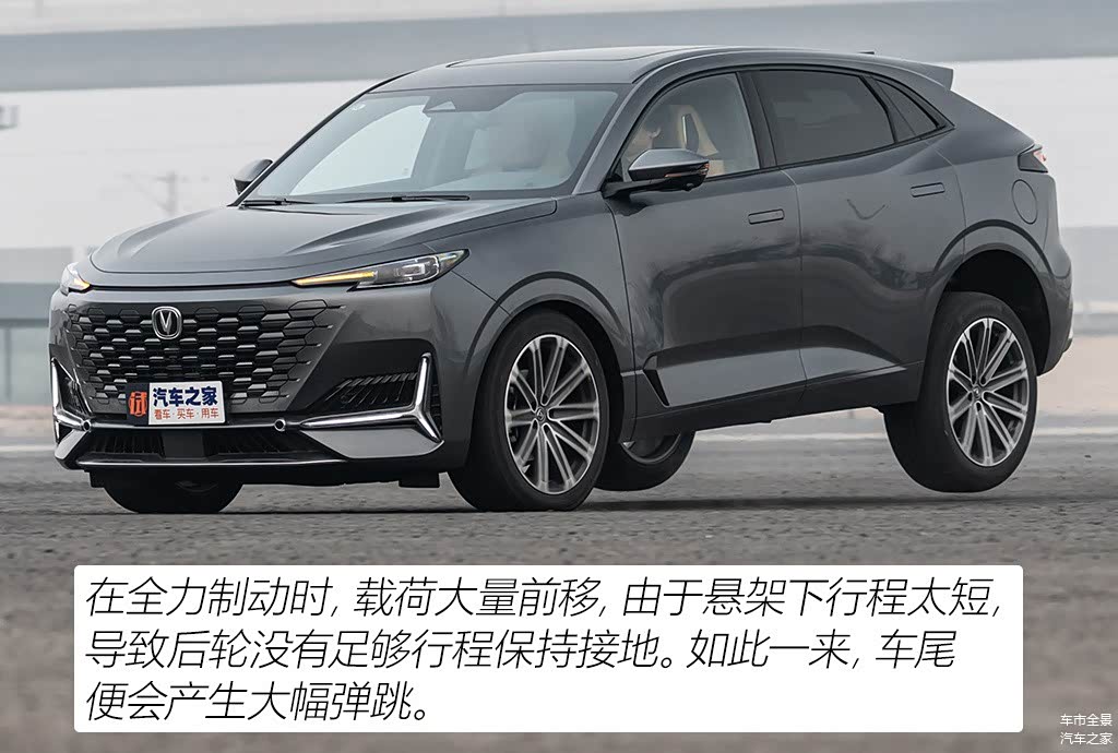 UNI-K前卫而科幻的造型让你觉得这是一款概念车,因此也备受网友关注,甚至被称为中型SUV新晋“网红”。然而比外观更引人注意的是,这款车底盘(前:麦弗逊式独立悬架;后:多连杆式独立悬架)调教或存在问题。汽车之家和懂车帝都对长安UNI-K进行了麋鹿测试,UNI-K的车身姿态在测试中十分夸张,甚至出现了右侧车轮全部离地的状况,悬架一跳一跳的。在刹车测试中,UNI-K在全力刹车时出现了后轮离地的情况,这种情况是非常罕见的。