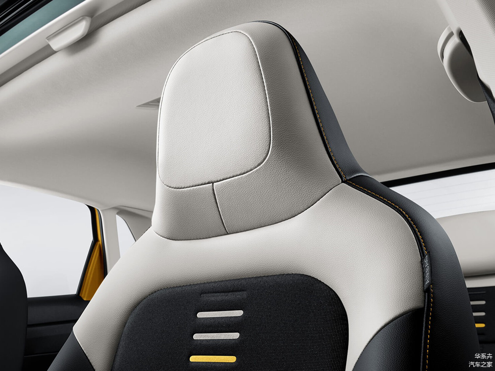 高配的两款车型采用了皮/织物混搭座椅,采用了一体式设计,座椅造型和配色比较漂亮,头枕更加贴近身体,能提供更好的辅助作用。
