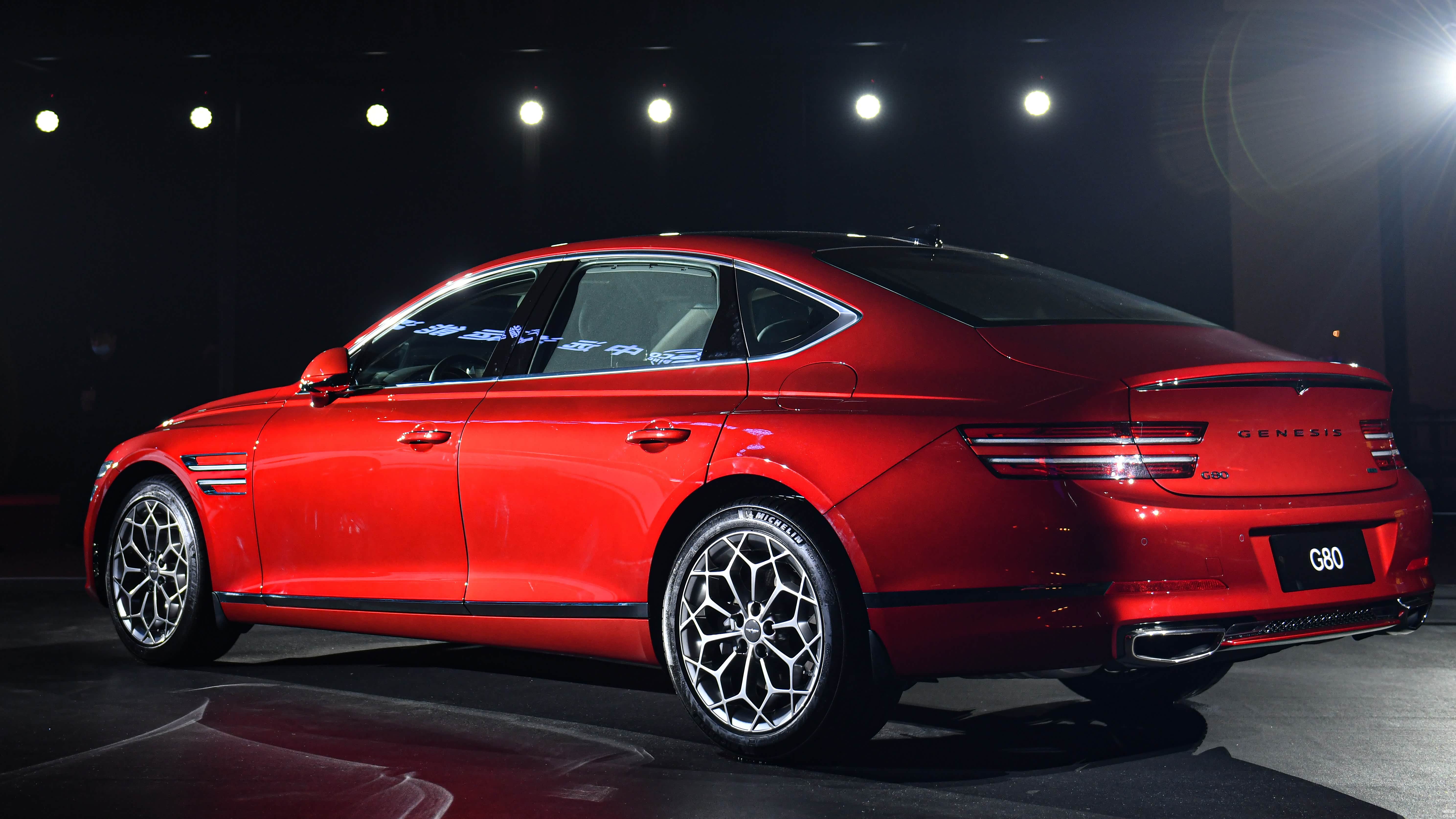 G80的尾部最大的特点依然是双横杠式造型尾灯,红白相见非常显眼。