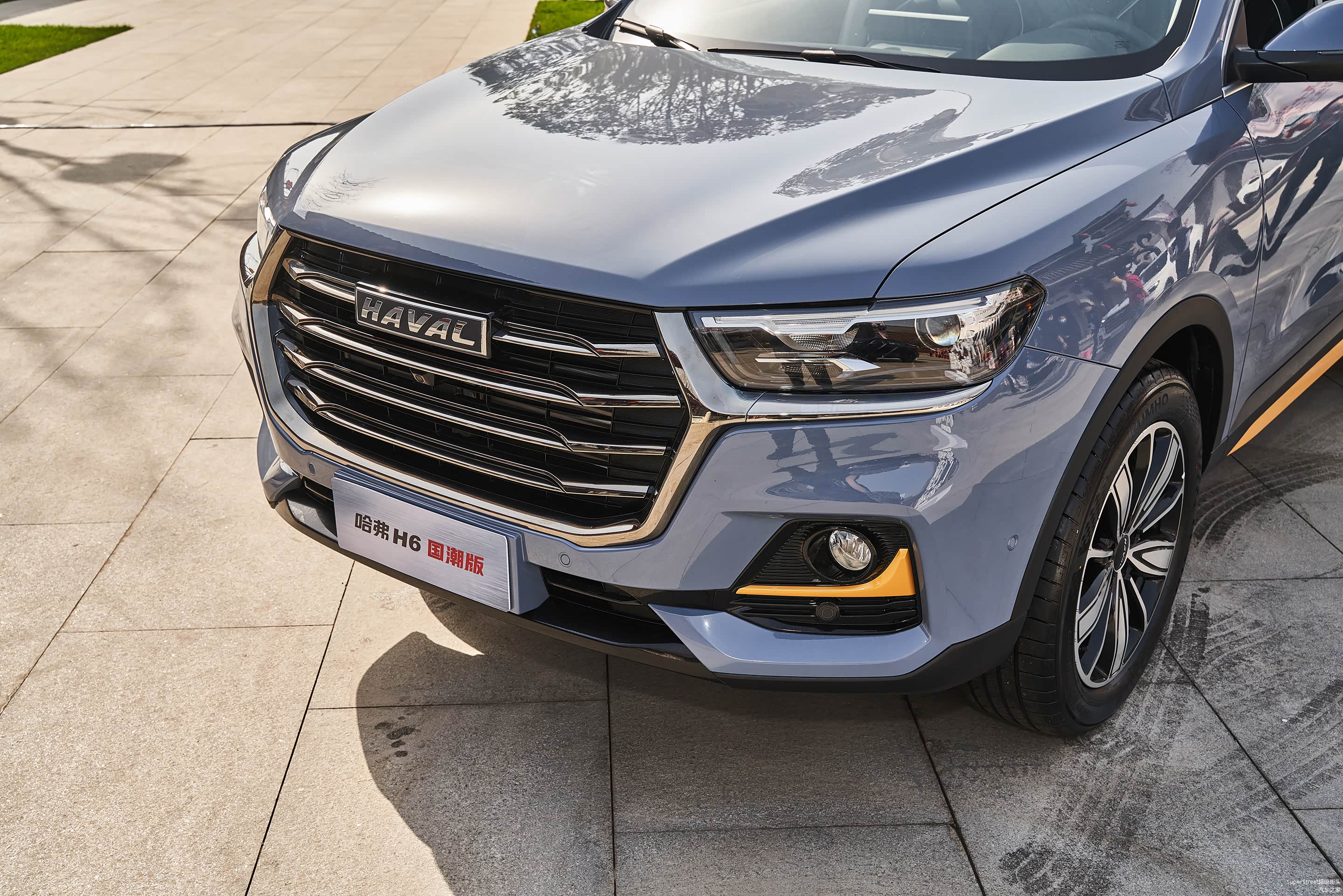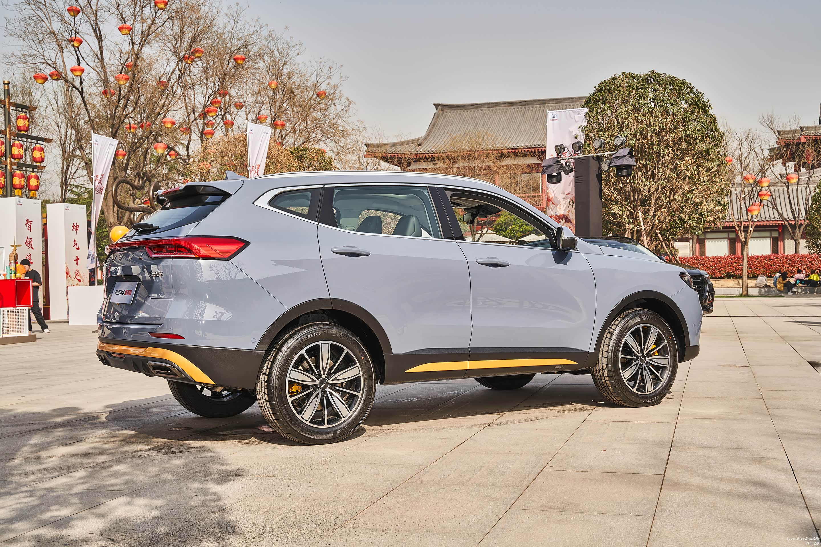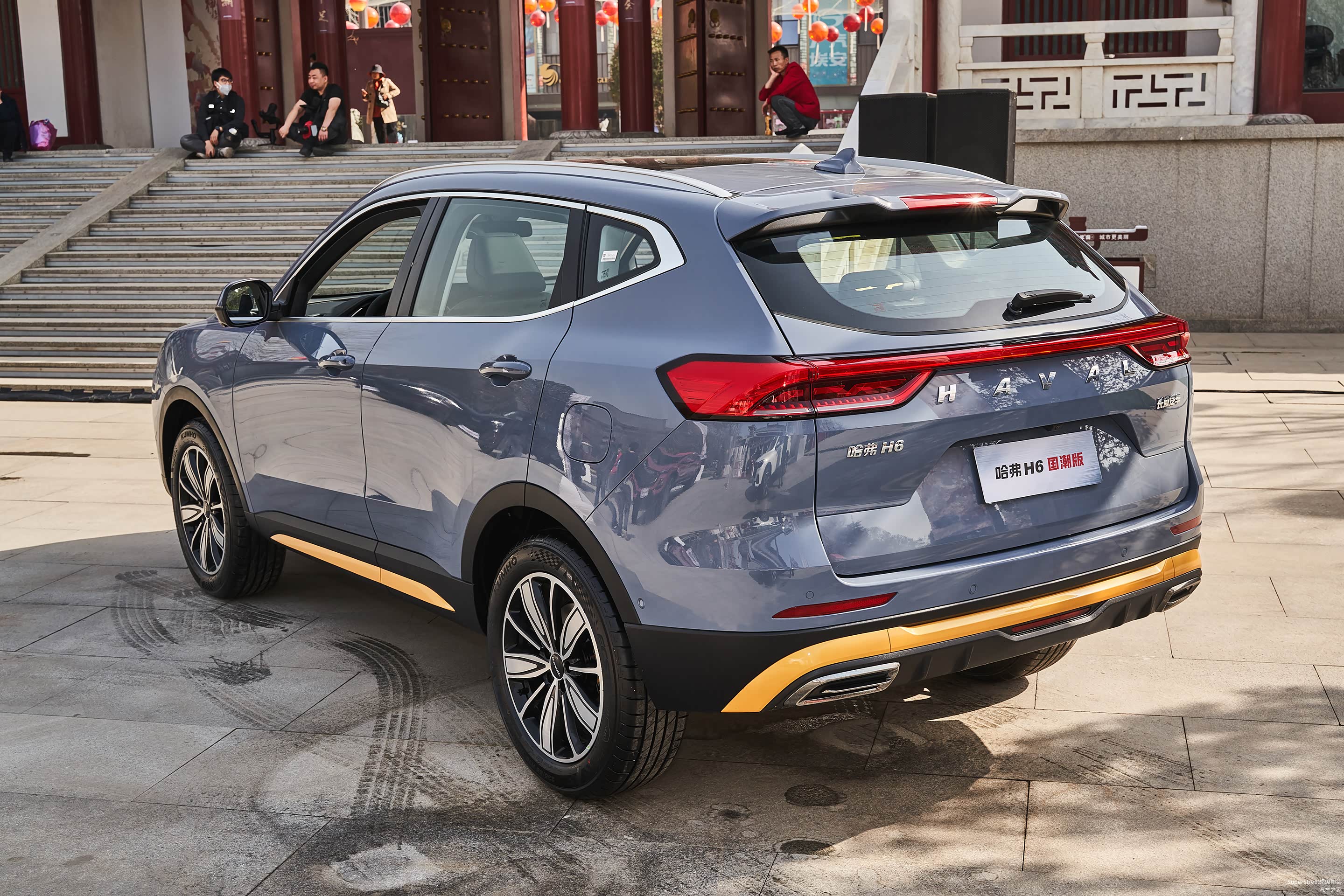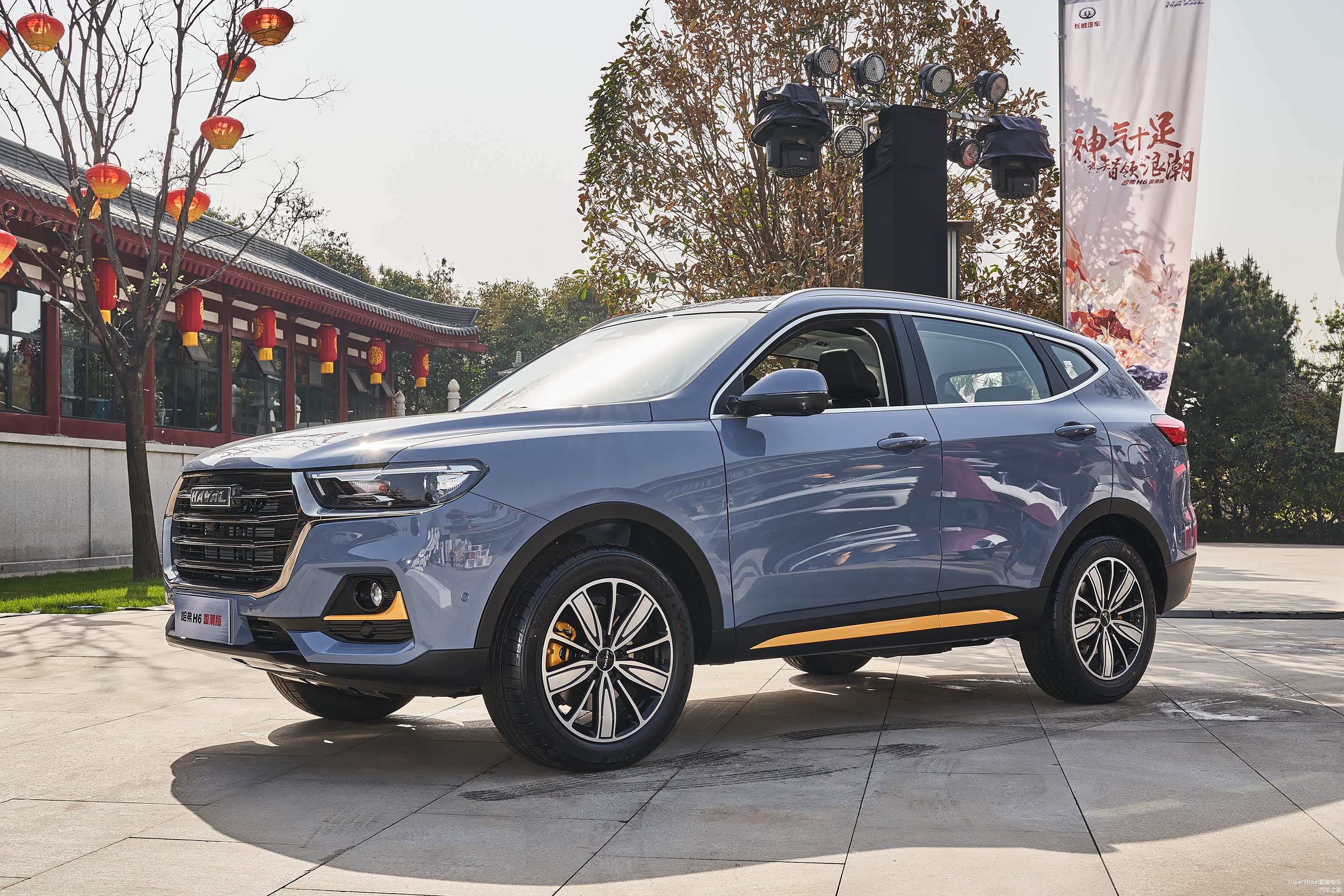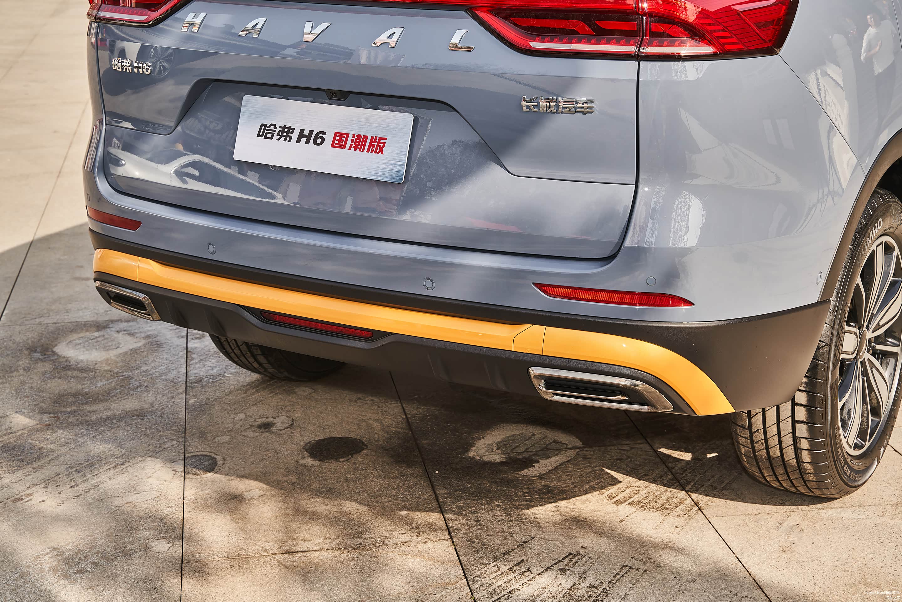 这次介绍的是这台哈弗H6国潮版豪华-青瓦灰配色的车型,在整体灰色车身上点缀着明黄色的装饰饰件。很有特色。