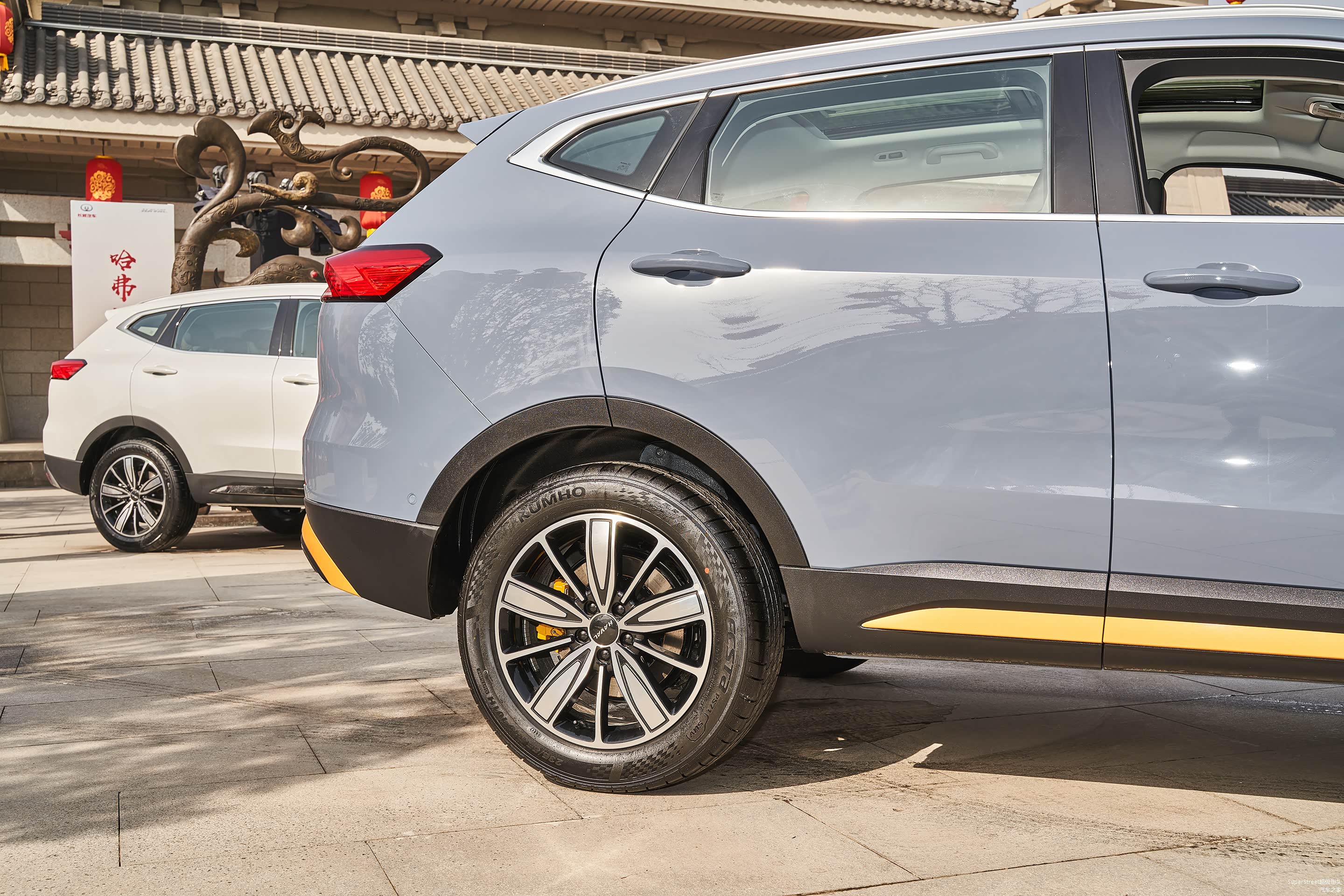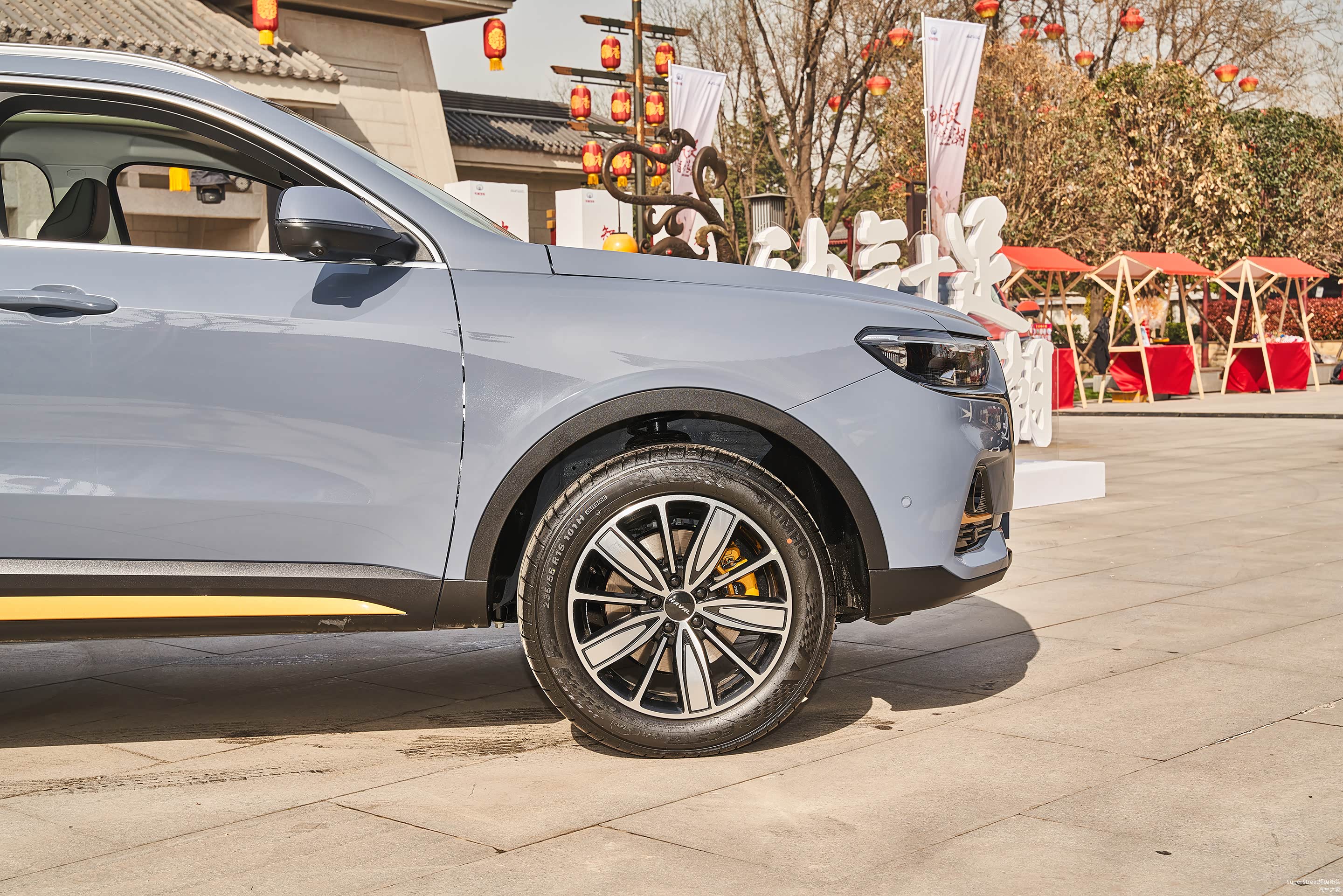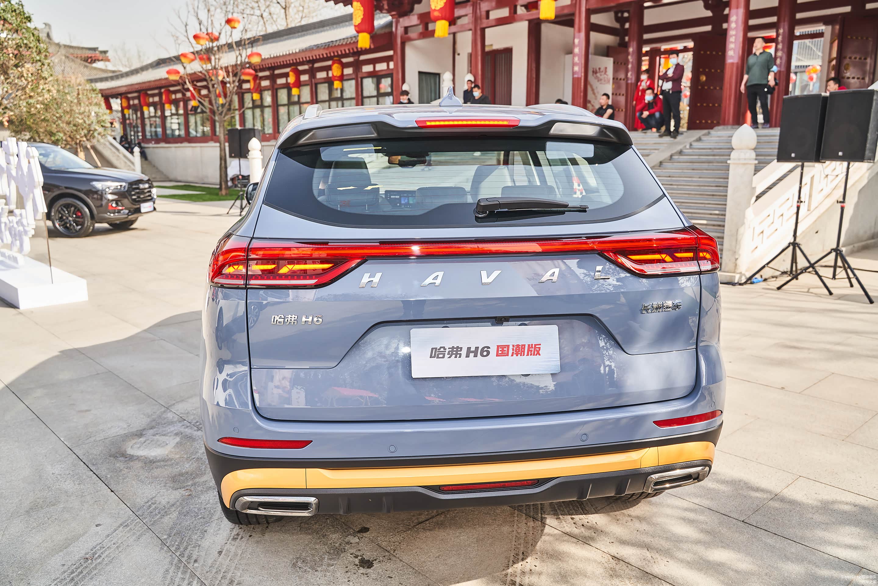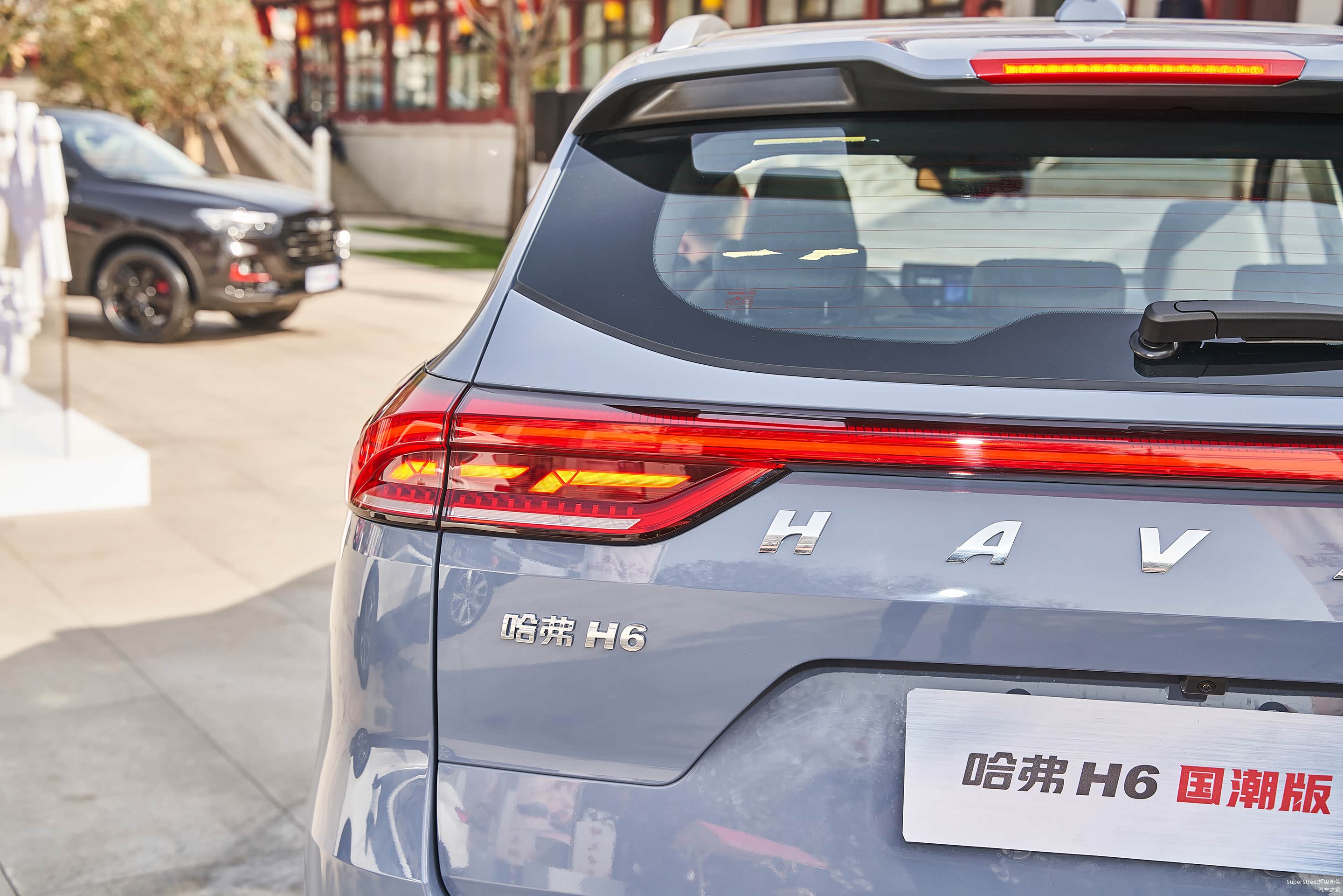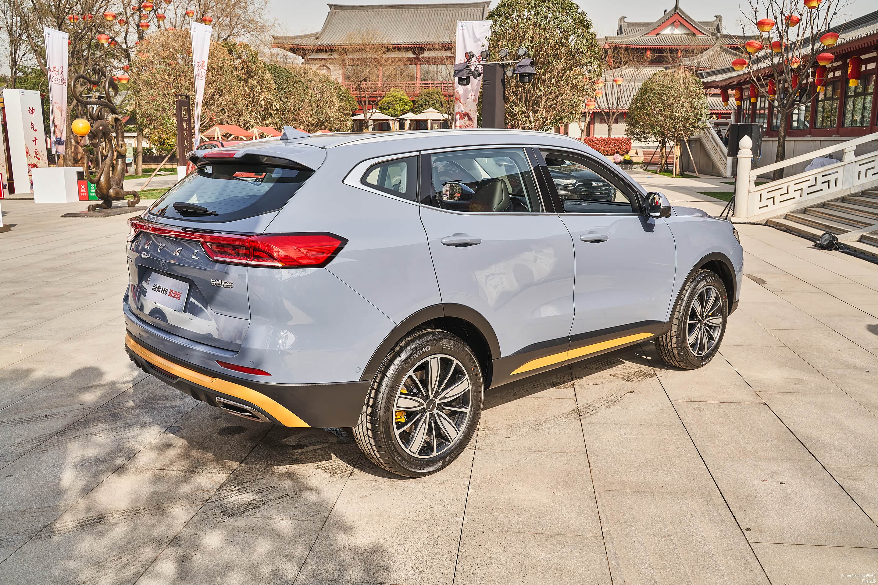 这次介绍的是这台哈弗H6国潮版豪华-青瓦灰配色的车型,在整体灰色车身上点缀着明黄色的装饰饰件。很有特色。