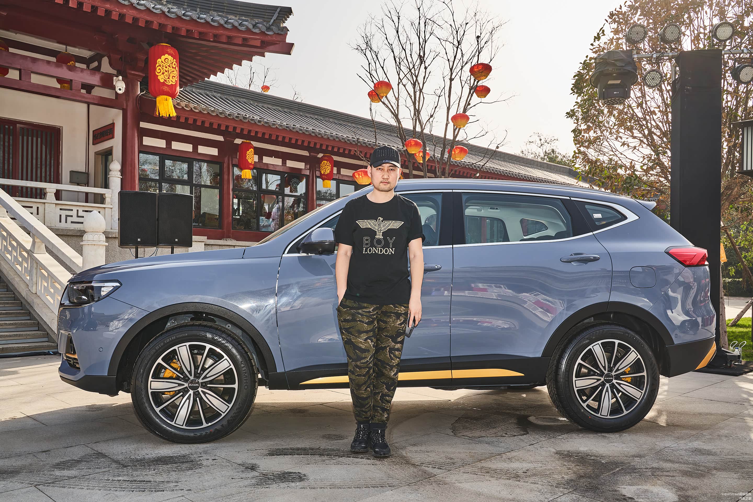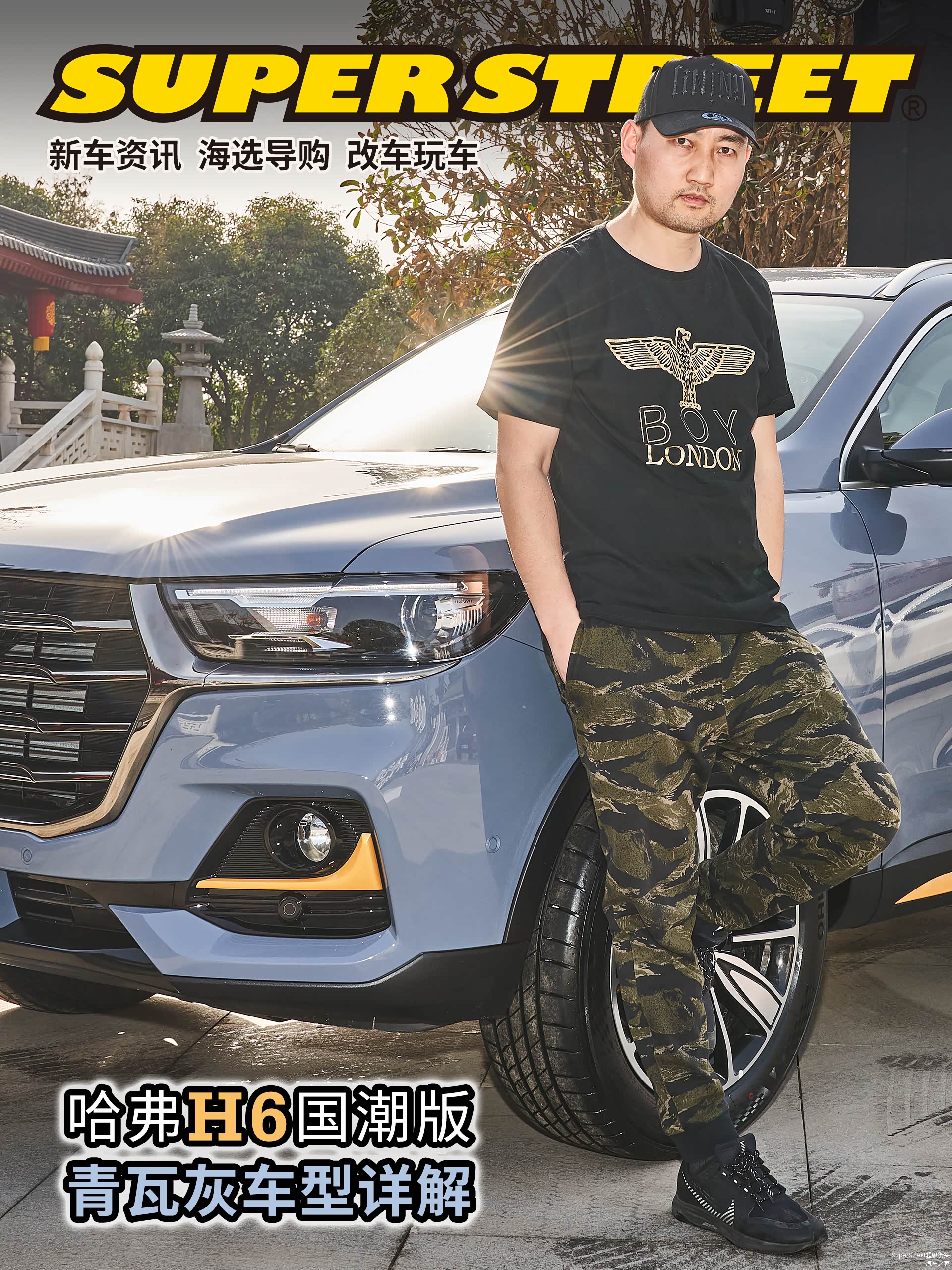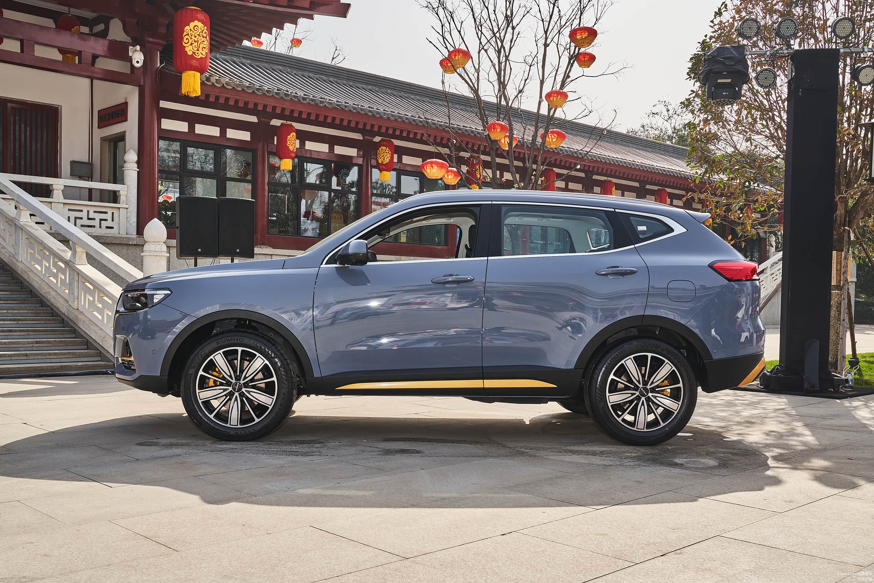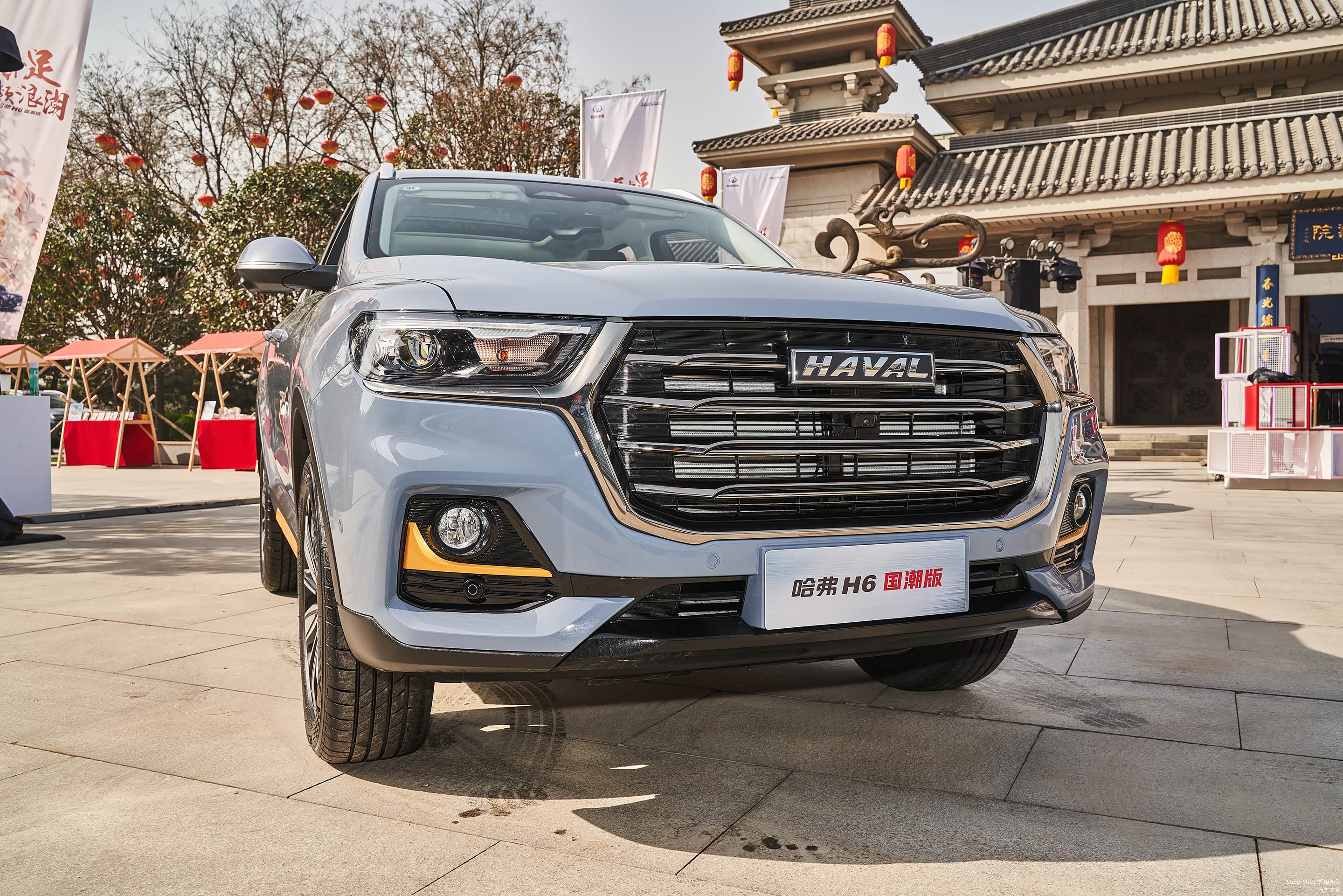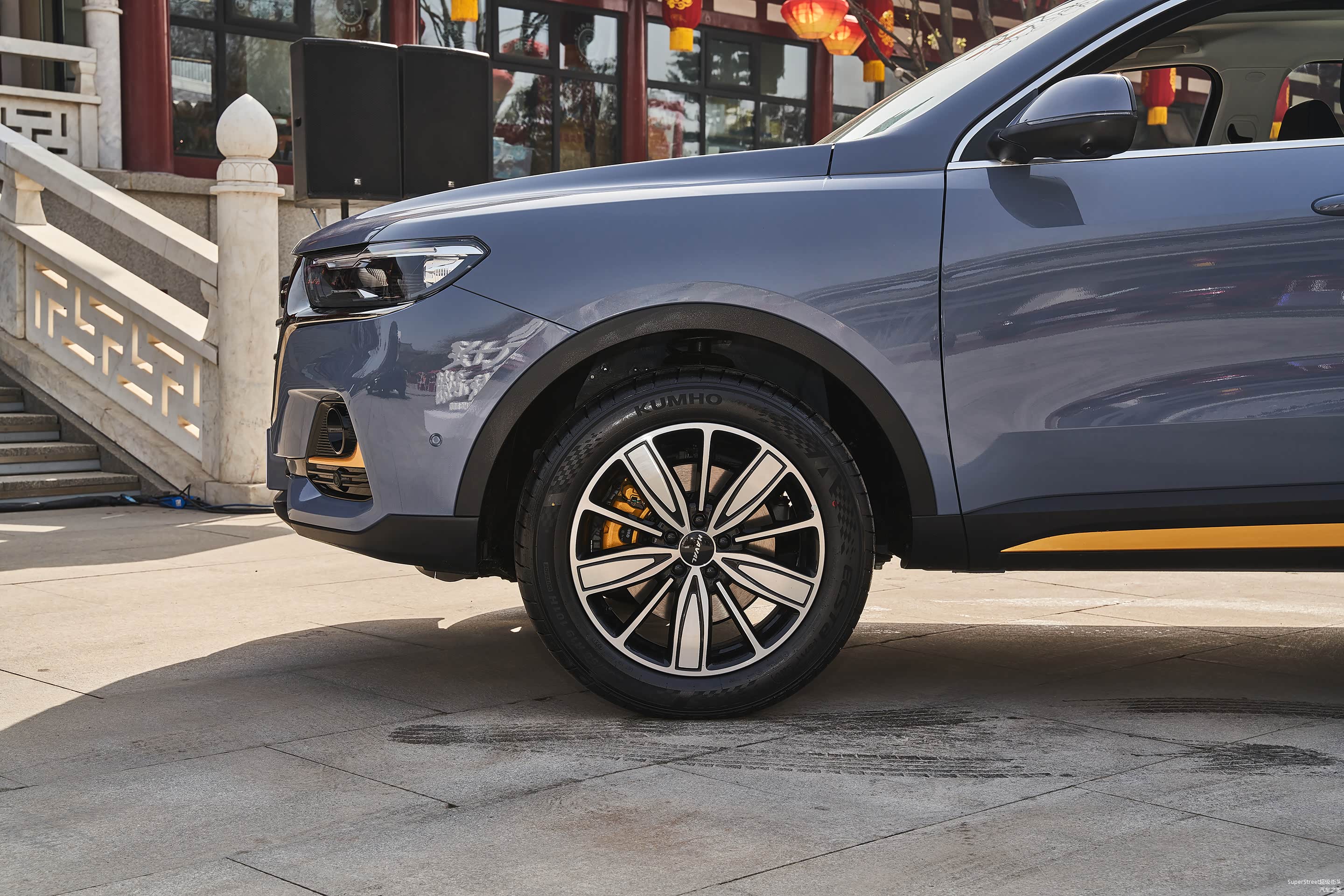 这次介绍的是这台哈弗H6国潮版豪华-青瓦灰配色的车型,在整体灰色车身上点缀着明黄色的装饰饰件。很有特色。