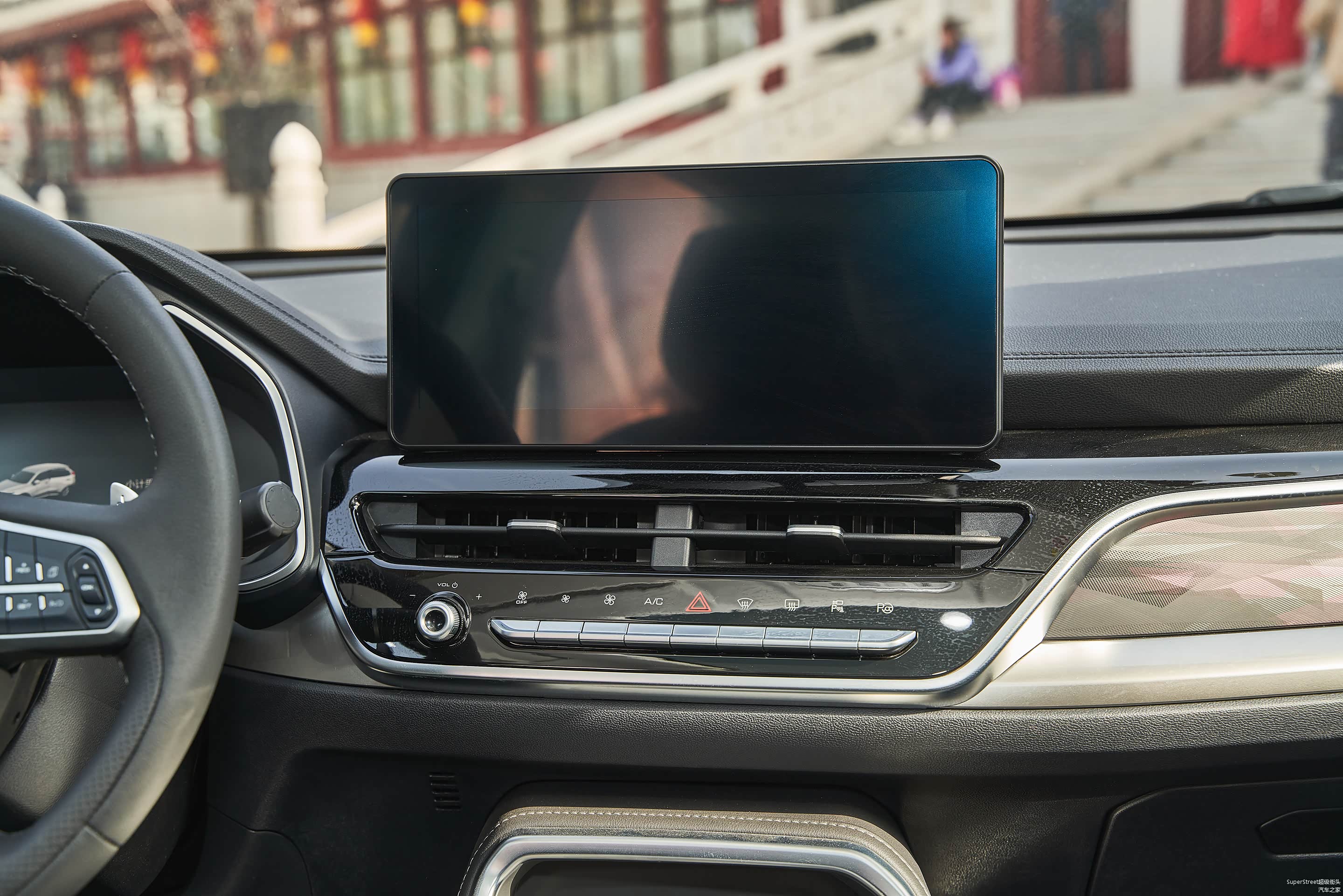 中控区域配置的物理按键,主要是空调控制按钮,另外还有音量的调节按钮和驻车的设置按钮。还是物理按钮使用起来比较快捷和顺手。