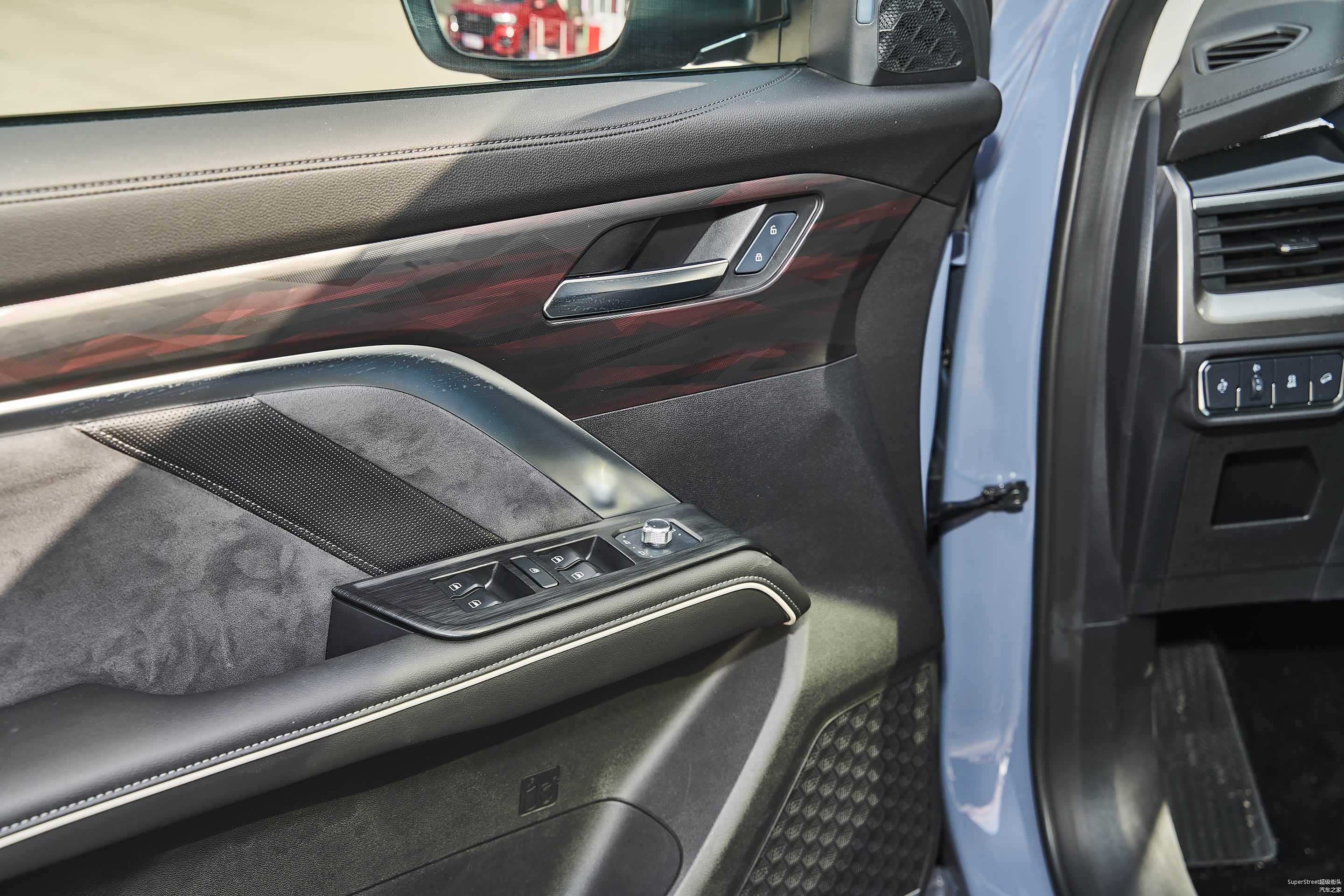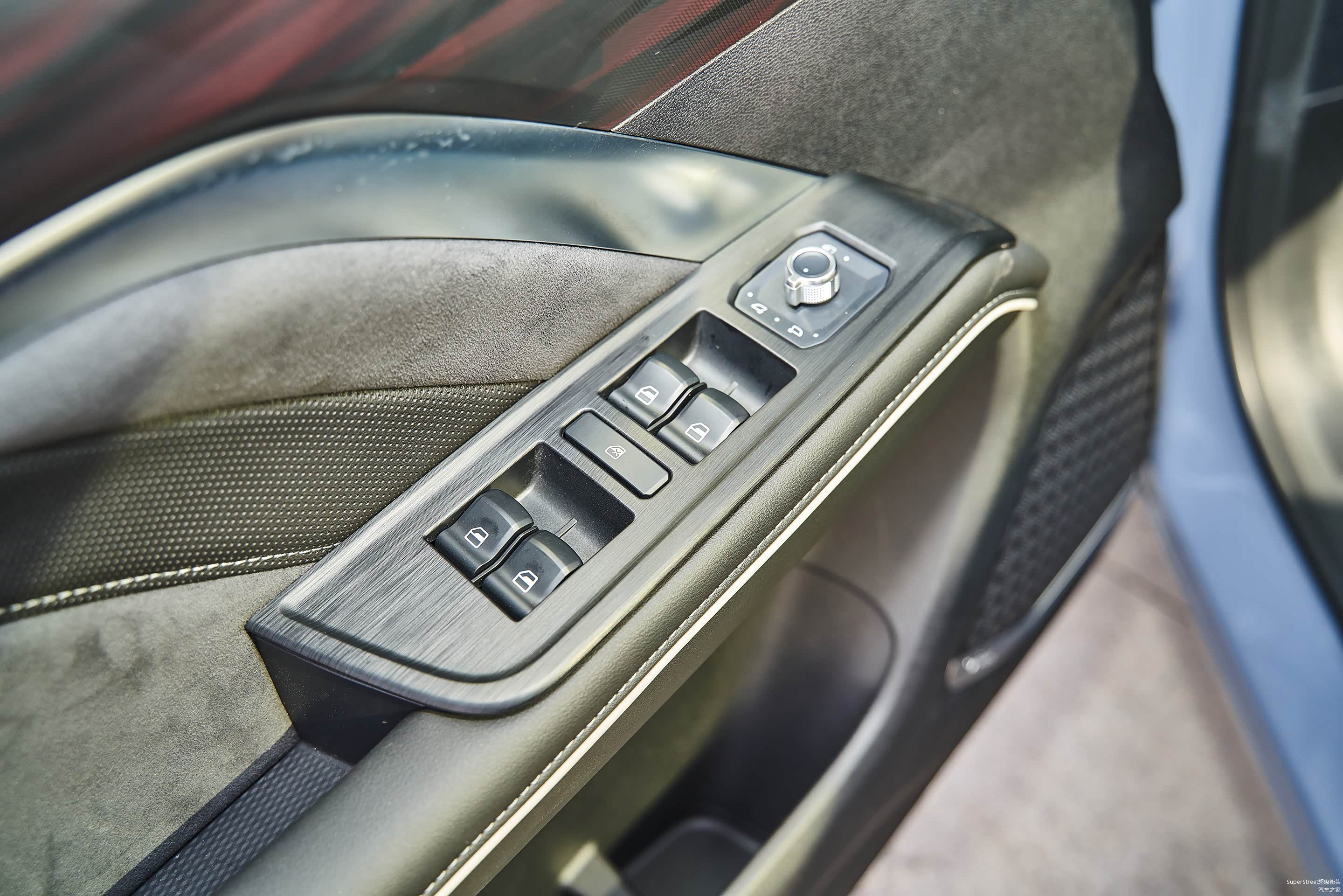 主驾驶门板上的车窗控制键均为一键升降功能,还配置了后视镜调节功能的旋钮。