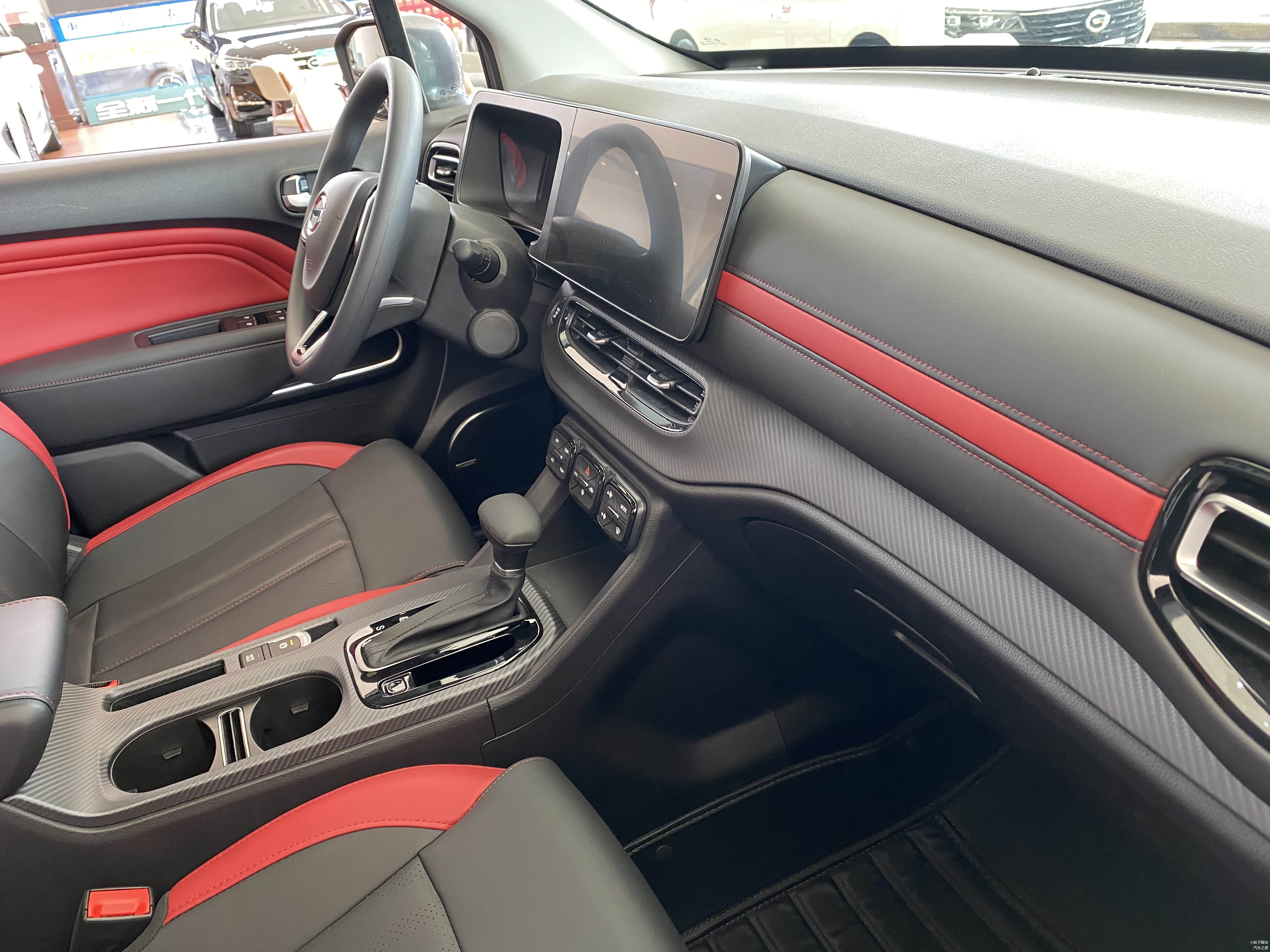 至于内饰,这台车使用了目前非常流行的双联屏幕设计,液晶仪表盘大小为7英寸,显示效果清晰,配合10.25英寸的液晶触控屏使用起来还是挺有科技感的,而且在中控台、门板以及座椅等日常手肘能触碰到的区域都做了皮革软包,红黑双色搭配在一起也让车内看起来更有运动氛围。