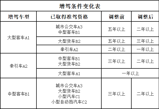 而申请增驾A2则调整为22周岁以上,增驾B1调整为20周岁以上。