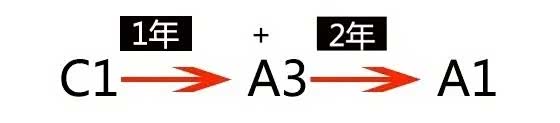 这个路径需要经历2次增驾考试,耗时3年,最后拿到A1驾驶证。