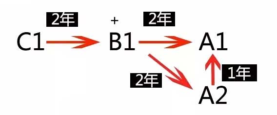 2、普通人打怪升A1路线:C -> B2 -> A1或C -> B1 -> A1,经历2次增驾考试,需要4年。