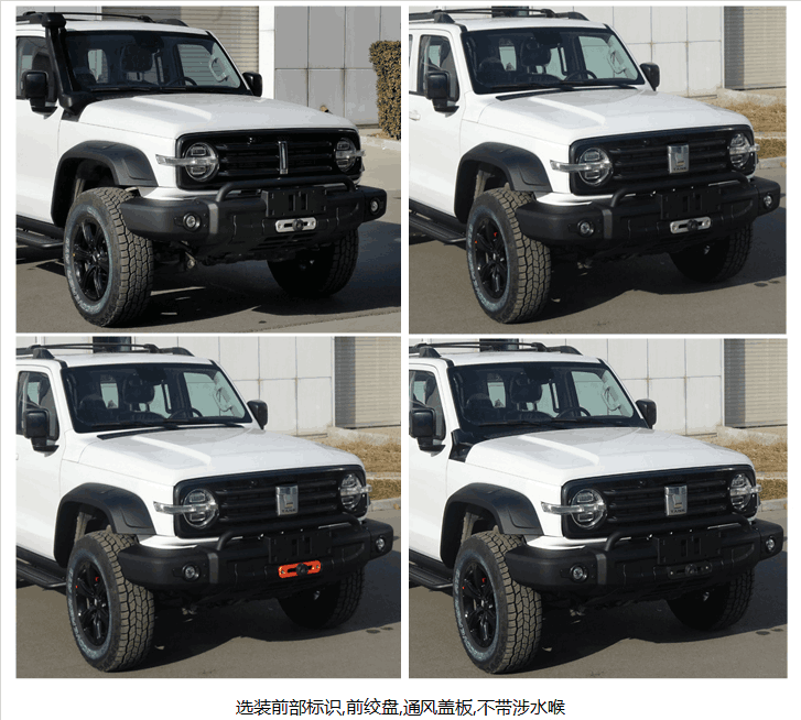 从曝出的申报图中可以看到,既有不包括行李架的素车版本,也有加装涉水喉的越野进阶原厂改装版。