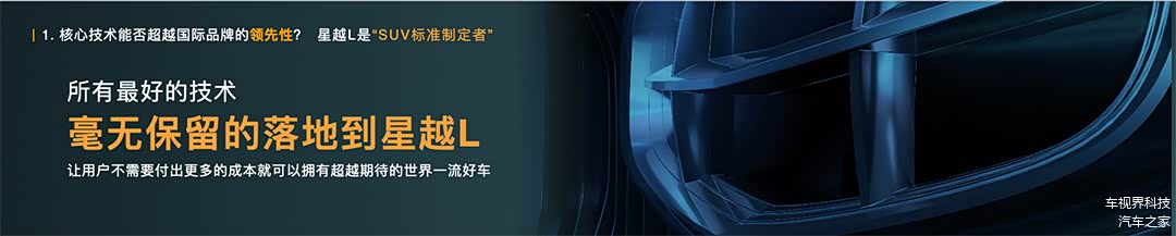SUV颠覆者行动一:为用户,在“安全、健康、智能、性能、节能”五大方面全面领先,成为SUV国际标准的制定者,全面进入科技吉利4.0架构造车时代。