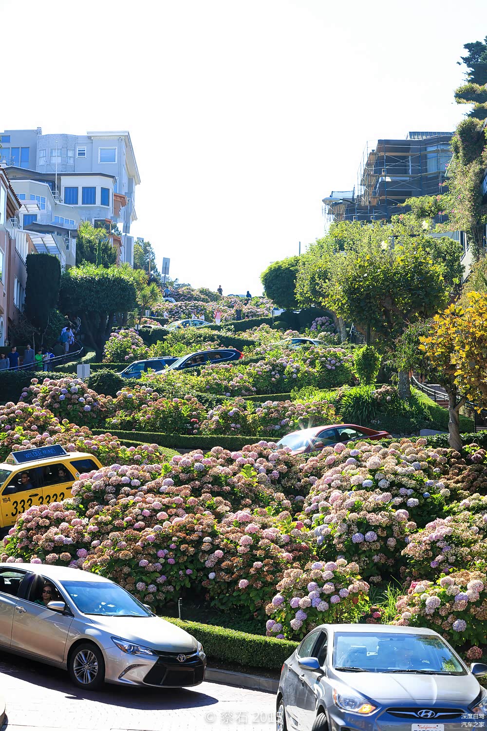 九曲花街,正式名称为伦巴底街(LombardStreet),九曲花街是世界上最弯曲的街道,在很短的两个街区之间有个8个急转弯,街道上遍植花木,花团锦簇。