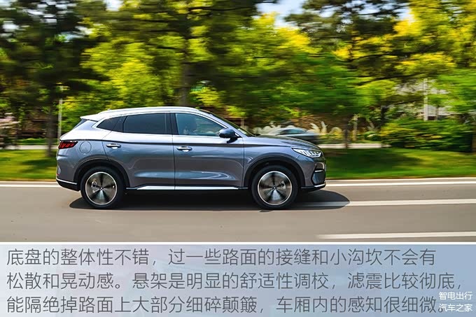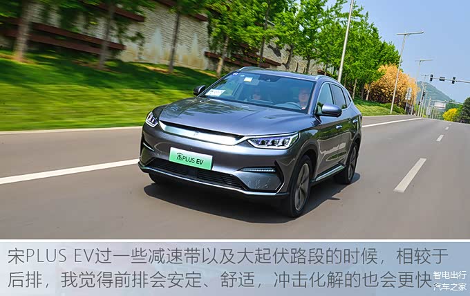 宋PLUS EV的悬架是明显的舒适性取向,会有些偏软,能带来不错的滤震能力,过一些颠簸路段的时候,车厢内的乘客都不会有太清晰的路感,家用很舒适。作为一台重心不低的SUV,且悬架偏软,在侧倾抑制上就不要有太高期待了,入弯前还是要提前长距离控制好车速,避免推头,更适合家用心平气和的开。