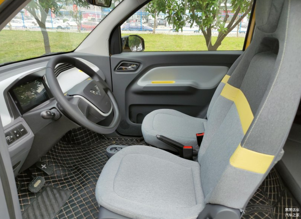 宏光MINIEV外观精致可爱,环形LED大灯光源,内部采用熏黑设计,整体方正可爱。但车身尺寸依然是长宽高2917×1493×1621mm,轴距1940mm。内饰与车身颜色相统一,视觉上更加协调,形成内外呼应的设计。车内全系采用四座配置,可以独立放倒座位,配备倒车影像、安全气囊,蓝牙等功能,可谓是麻雀虽小五脏俱全。