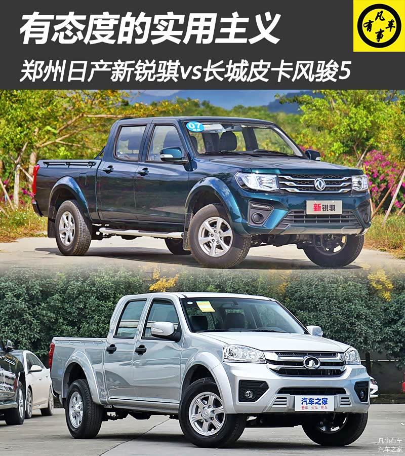 在聊皮卡车型聊到郑州日产锐骐和长城皮卡风骏5的时候,朋友就问到了一个大家平时都会关心的点,那就是谁更好,这也是大家比较喜闻乐见的对比。其实任何产品都有它自身的优势,和同级对手比的时候也会显露一些短板,所以盲目的对比是不客观和不负责任的。因此在聊起这两款车略做对比的时候,朋友就给定了一个主题,那就是谁更适合如今的家用需求。